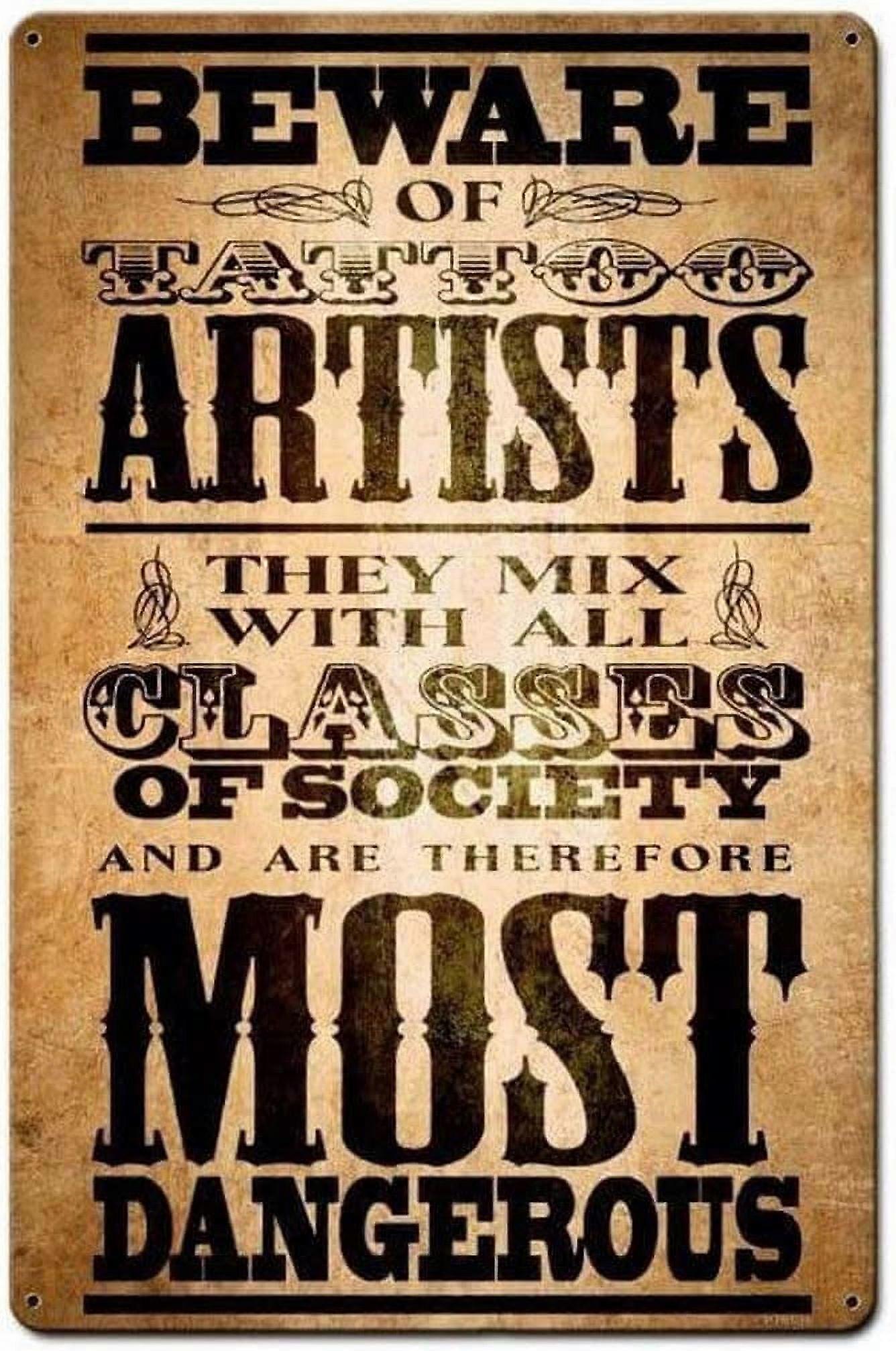 Beware Tattoo Artist Metal Tin Sign, Tin Signs Vintage Coffee Wall Coffee & Bar Decor,12 x 8 Inches