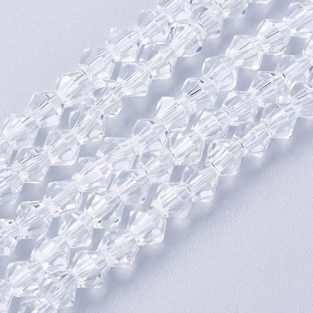 Clear Glass Bicone Beads Strands Faceted 4x4mm Hole: 1mm about 88~89pcs/strand 12.99~13.39 inch Material: Glass Color: Clear Shape: Bicone Usage: Beads Package Size: 2 Strand per package