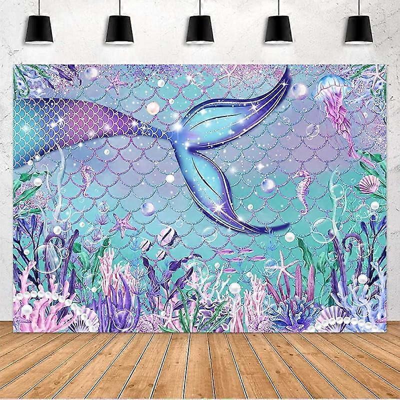 Custom Mermaid Backdrop for Girls Birthday, Under The Sea Little Mermaid Party Banner, Purple Corals Pearls Glitter Scales Decor (Purple, 7x5ft)