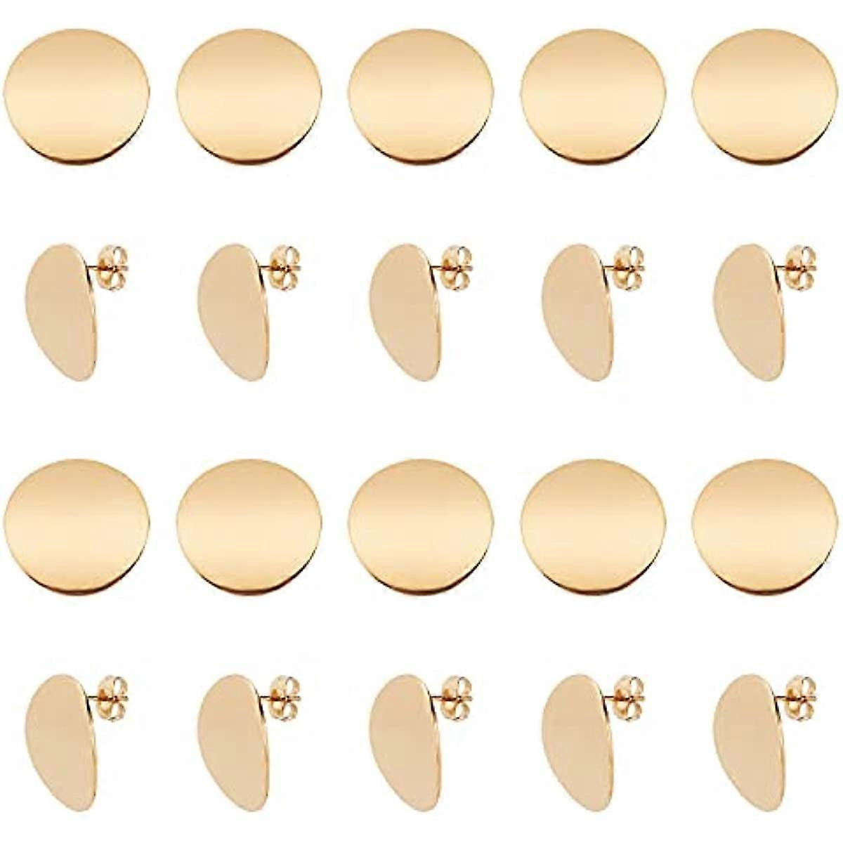 20pcs Golden Stud Earring Findings with Loop, Flat Round Stainless Steel Ear Nuts for Jewelry Making, 0.8mm Pin