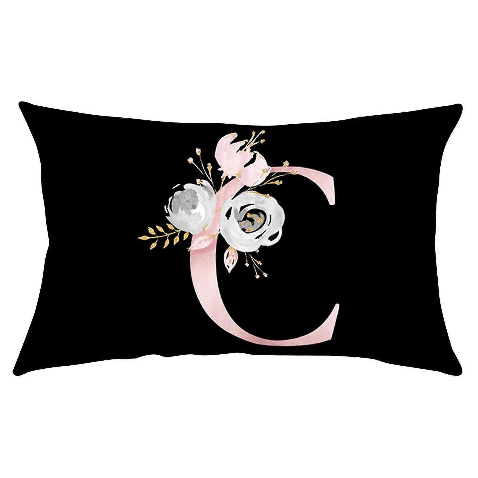 Miayilima Pillow Covers English Alphabet Anw Floral Pillowcases Black Throw Pillow Case