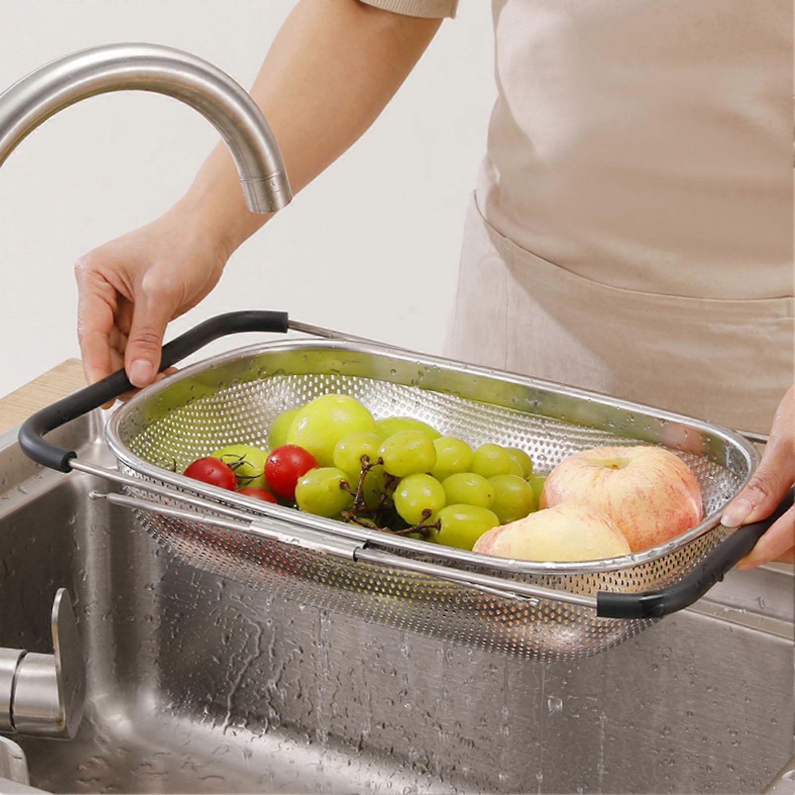 SUSUchens Kitchen Sink Colander Strainer Basket with Expandable Rubber Grip Large Capacity Vegetables Fruits Strainer Basket Drying Rack Style M