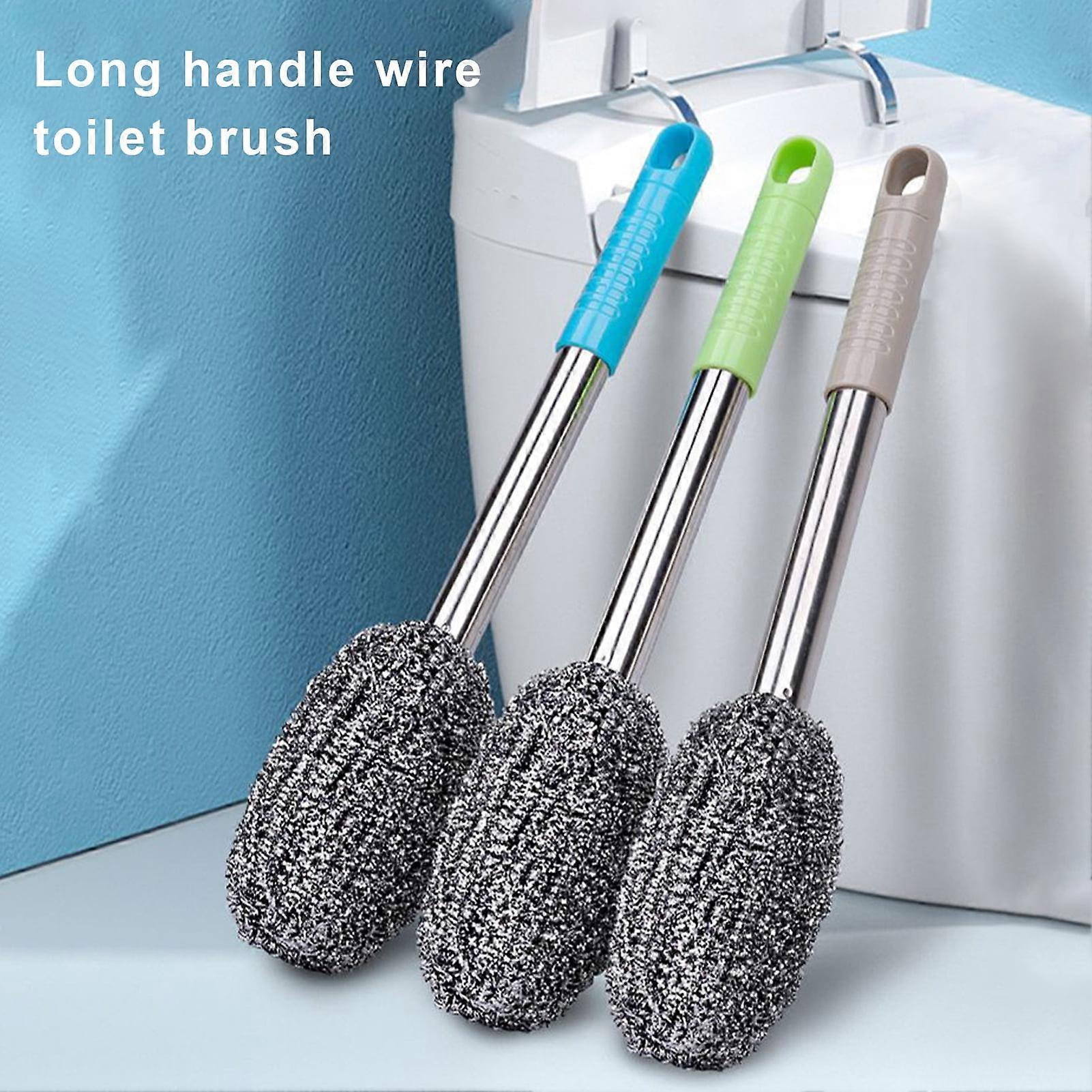SUSUchens Stainless Steel Sponge Scrubber Pad with Long Handle & Built-in Spring, Pot Pan Steel Wool, Bathroom Accessory, Random Color