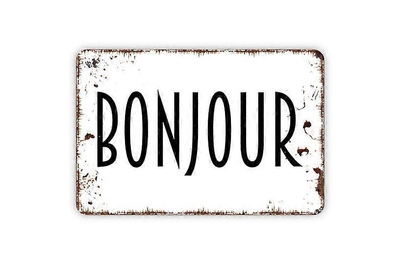 (Aluminum metal) Bonjour Sign Metal Sign Farmhouse Contemporary Modern Wall Metal Sign Size: 8 x 12 Inch
