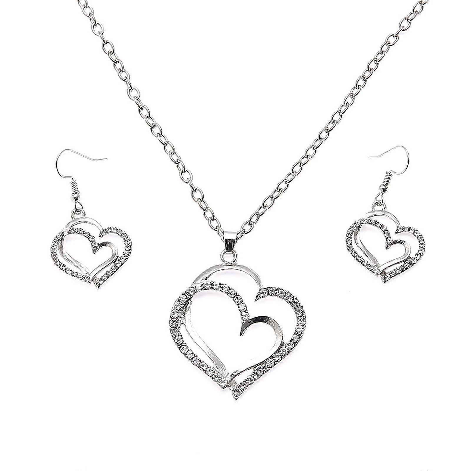 Kiplyki Wedding Banquet Wedding Accessories Double Love Heart-shaped Earrings Necklace
