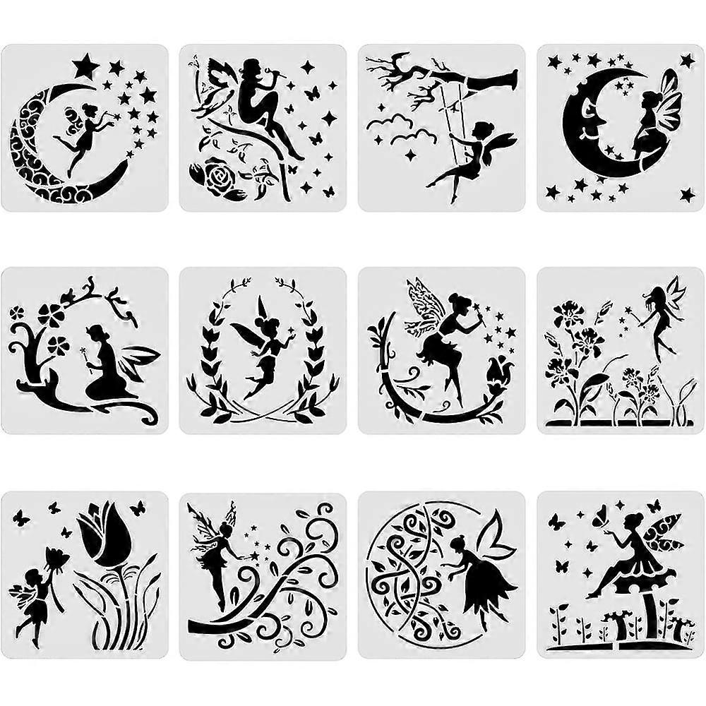 1Set 12pcs Plastic Reusable Stencils 30x30cm for Painting on Canvas, Fabric, Scrapbook, Wood, Tiles, Floor, Furniture - Angel & Fairy Pattern