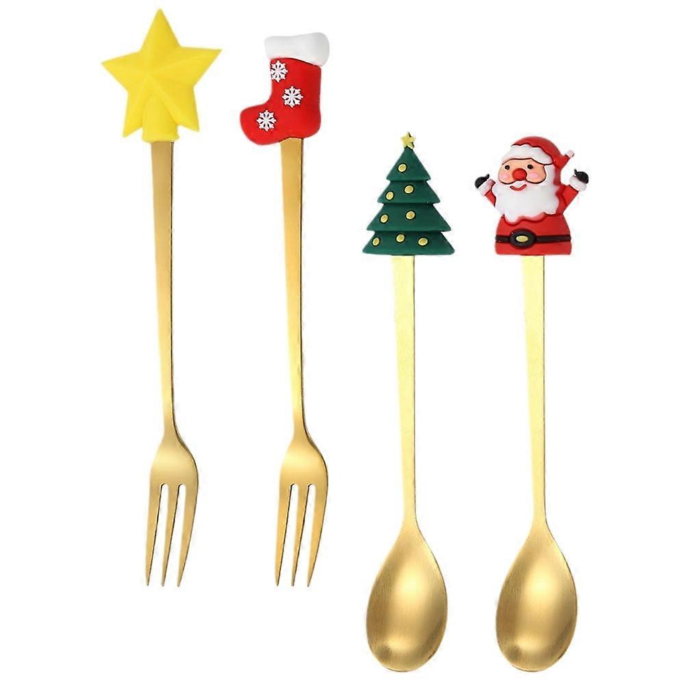1 set of Christmas Spoon Christmas Stirring Spoons Stainless Steel Coffee Spoons Xmas Spoons