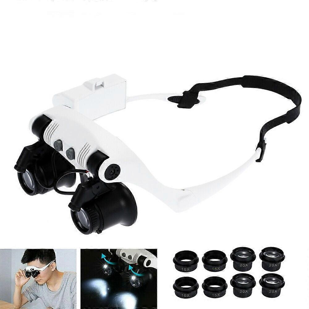 LED Illuminated Double Eye Jeweler Watch Repair Magnifying Glasses Loupe Headband Magnifier -8 Interchangeable Lens