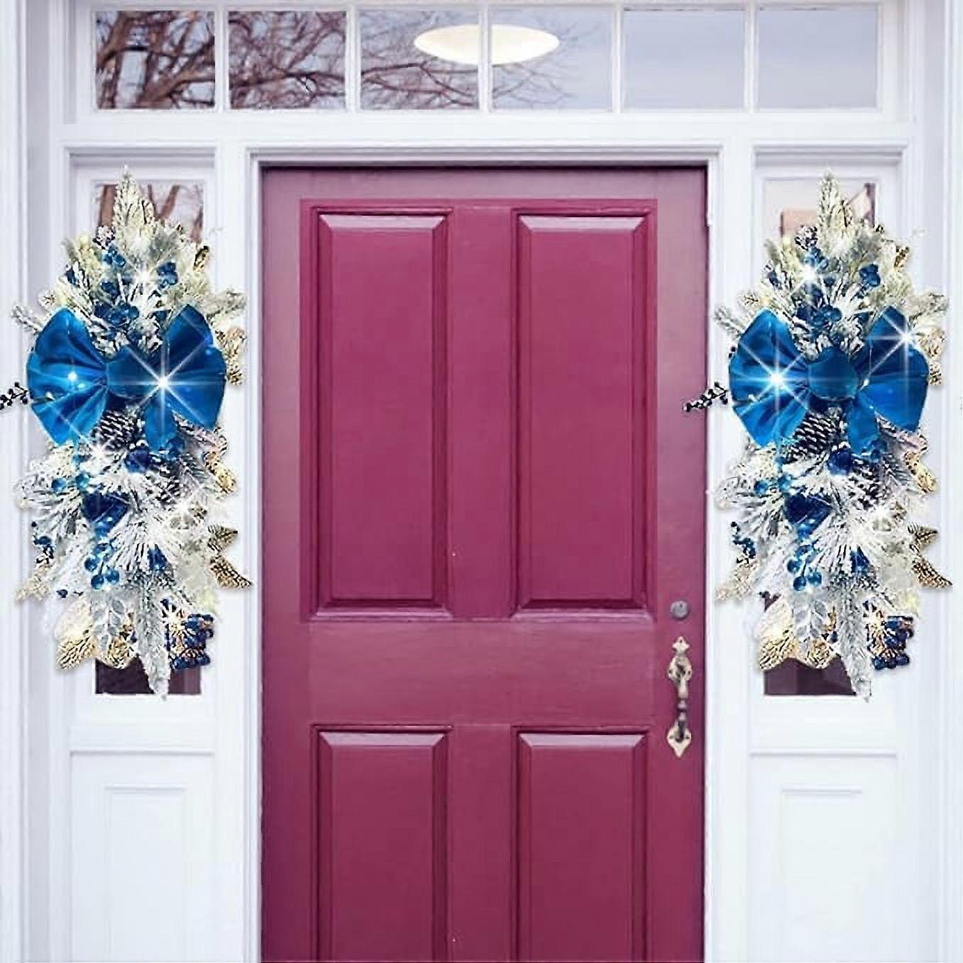 50cm Cordless Prelit Stairway Swag Trim, Artificial Christmas Teardrop Swag with Handmade Berries & Pine Nuts - Real Touch Green Wreath for Door