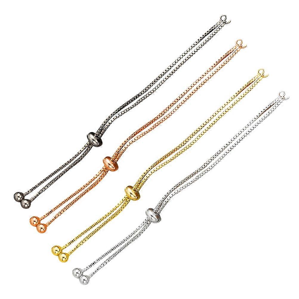 4pcs Adjustable Pulling Bracelets DIY Round Ball Semi-Finished Jewelry Making Kit (Golden, White Gold, Rose Gold, Black)