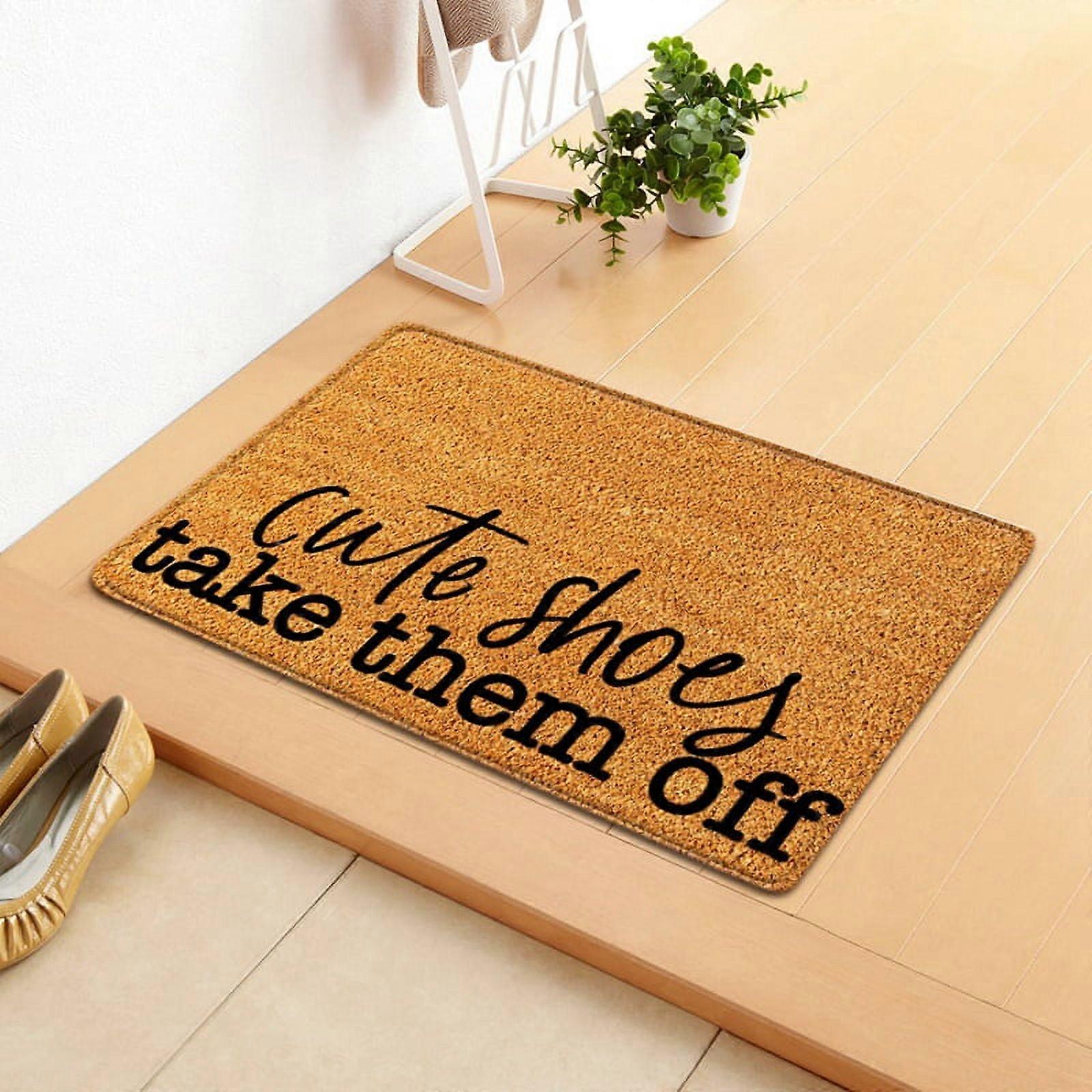 Fall Door Mat Outdoor Welcome Doormat for Front Door, Take off Shoes Letter, Non-Slip PVC Backing Coir Mat Compatible with Fall Decor