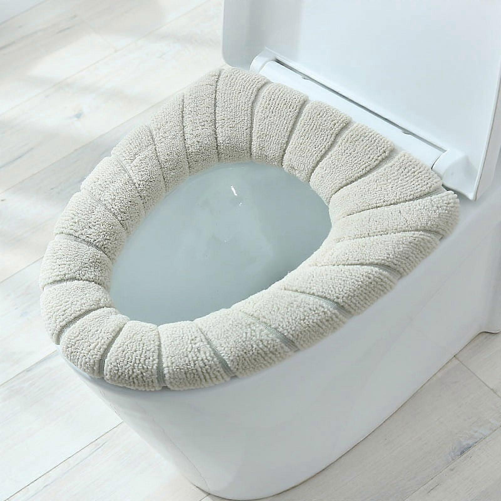 2Pcs Toilet Seat Cover Pads with Handle, Soft Thicker Stretchable Washable, Fits All Oval Toilet Seats