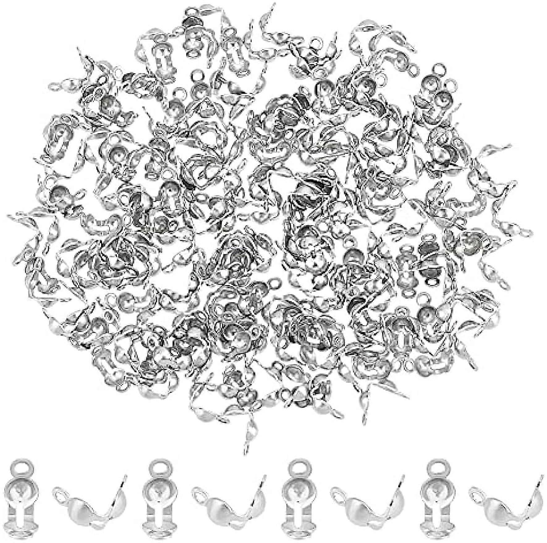 200pcs 6x3mm Stainless Steel Bead Tip Cord Ends Open Clamshell Crimp Knot Covers End
