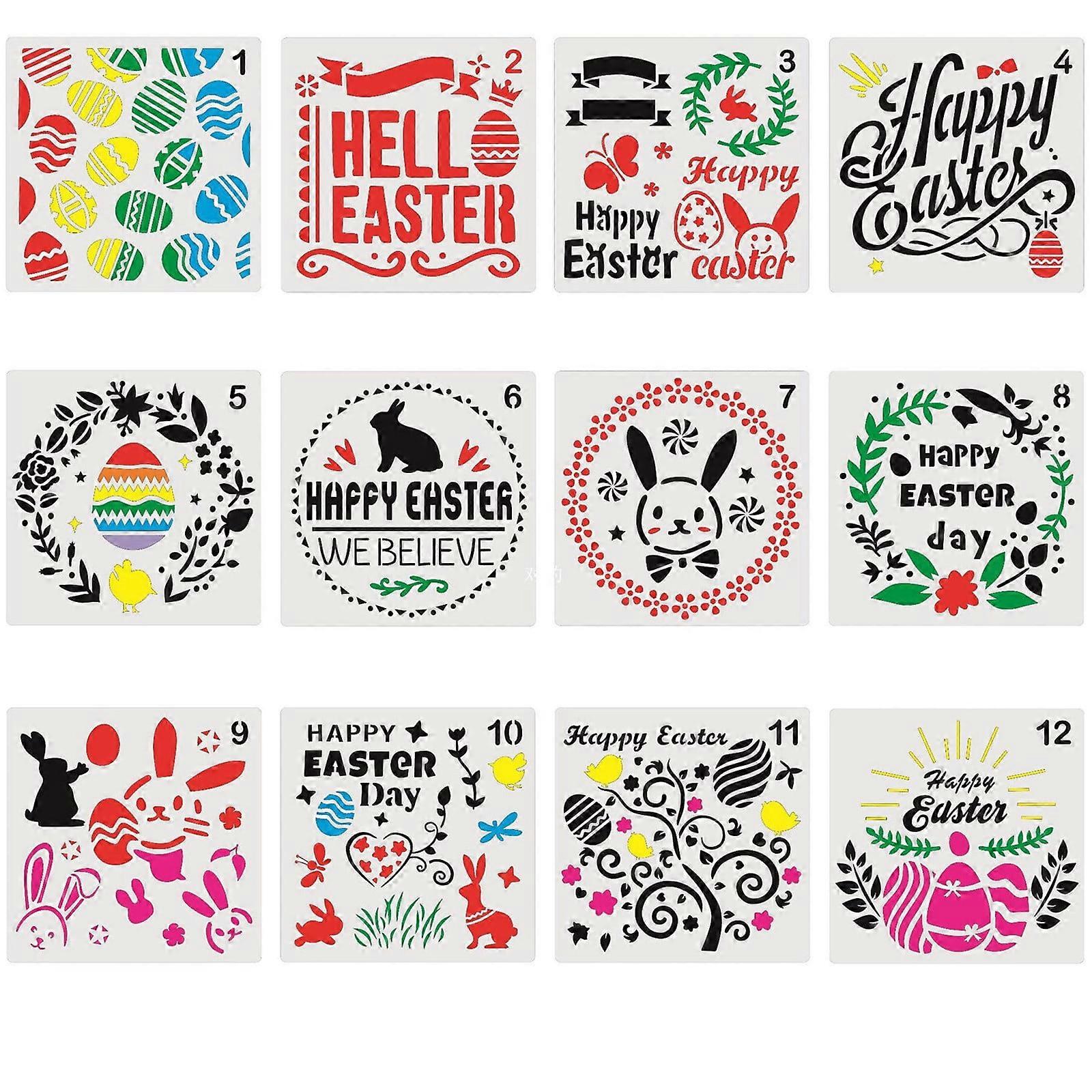 Office&Craft&Stationery Celebration Activ Templates Hollow Drawing Easter Stencils 12Pcs Plastic Painting Home Diy