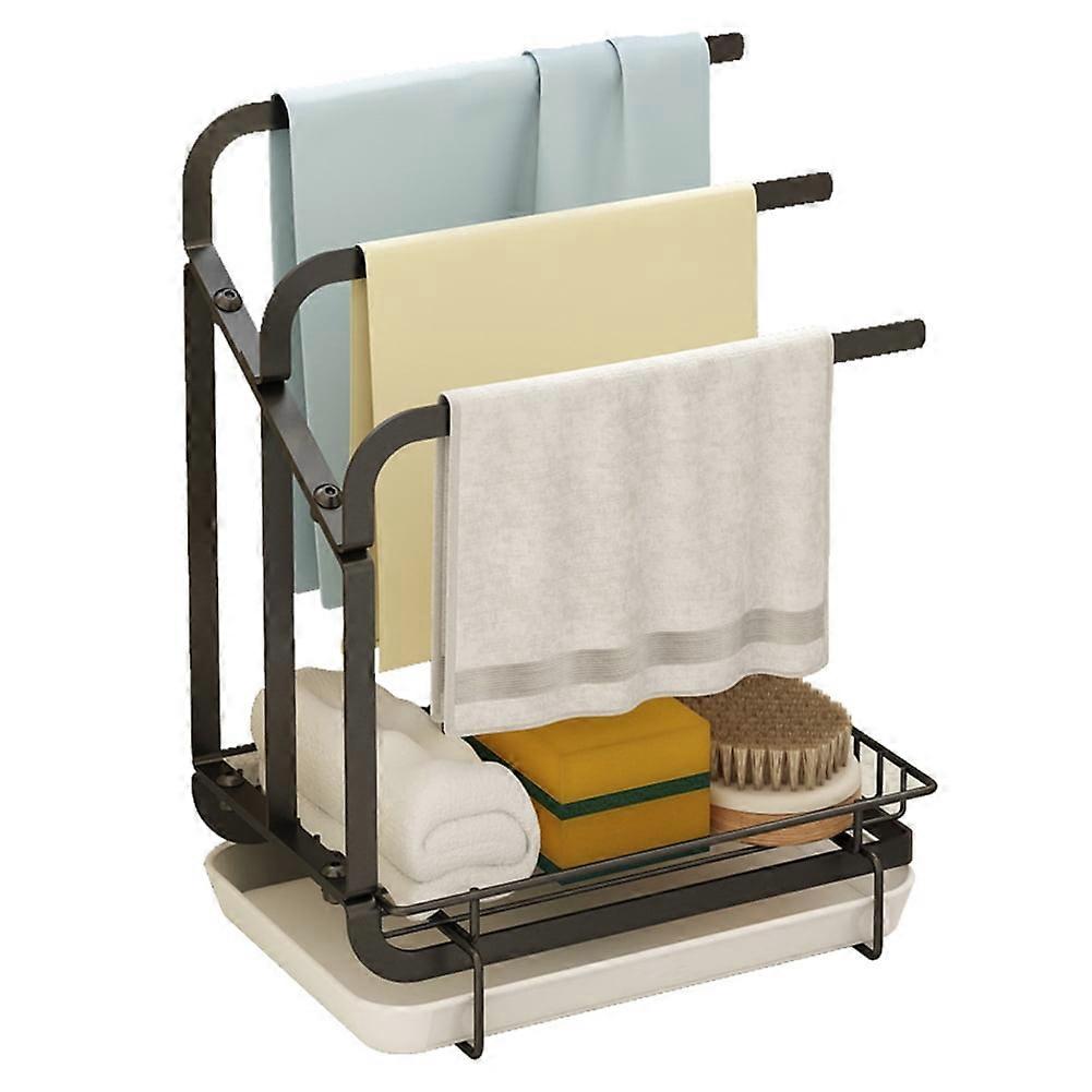 Sponge Holder with Drain Pan for Kitchen Sink, Compatible with Metal Rack, Removable Drip Tray, Soap Dish, Black
