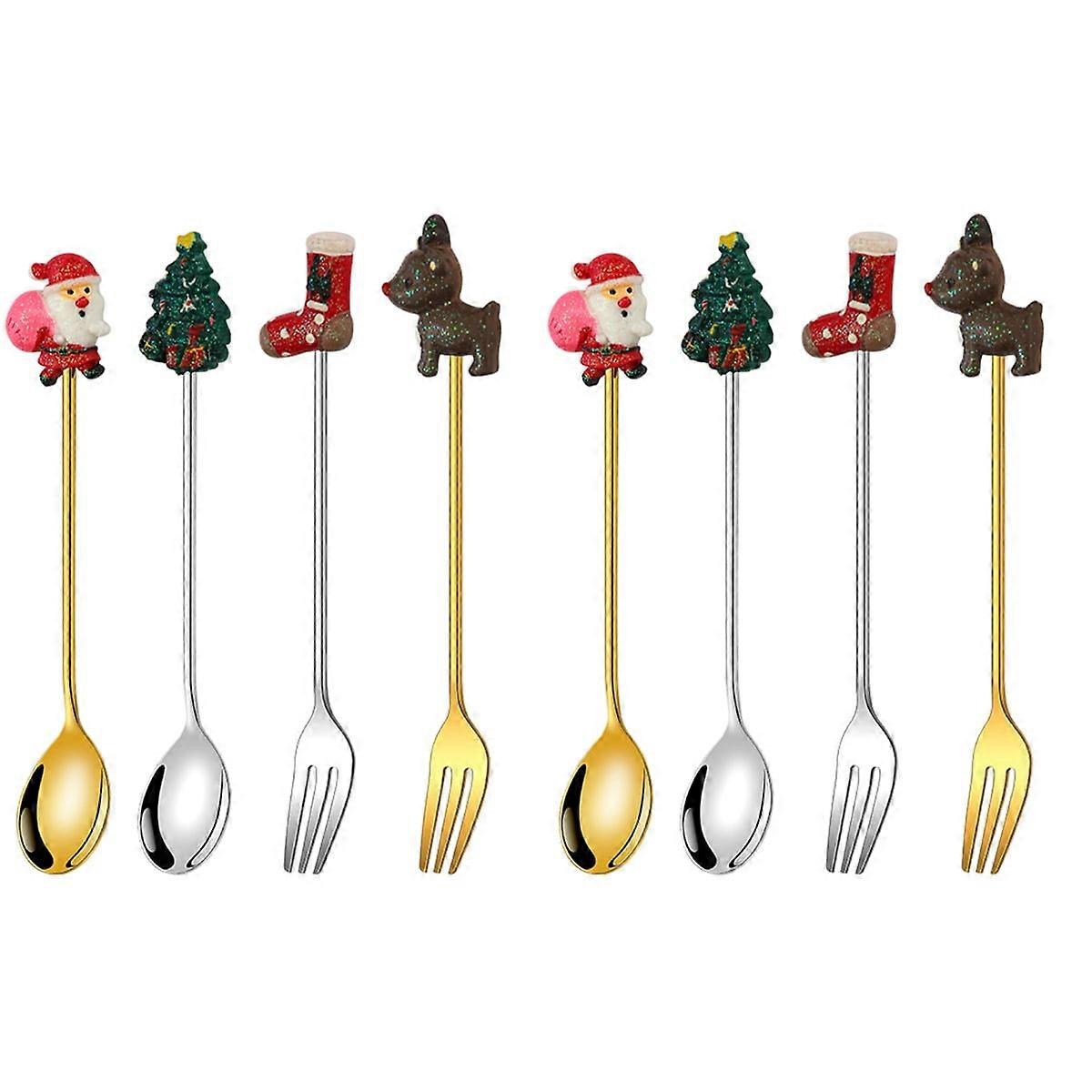2 Sets of Dessert Spoon Fork Party Dinnerware Kit Xmas Themed Tableware Xmas Party Gift