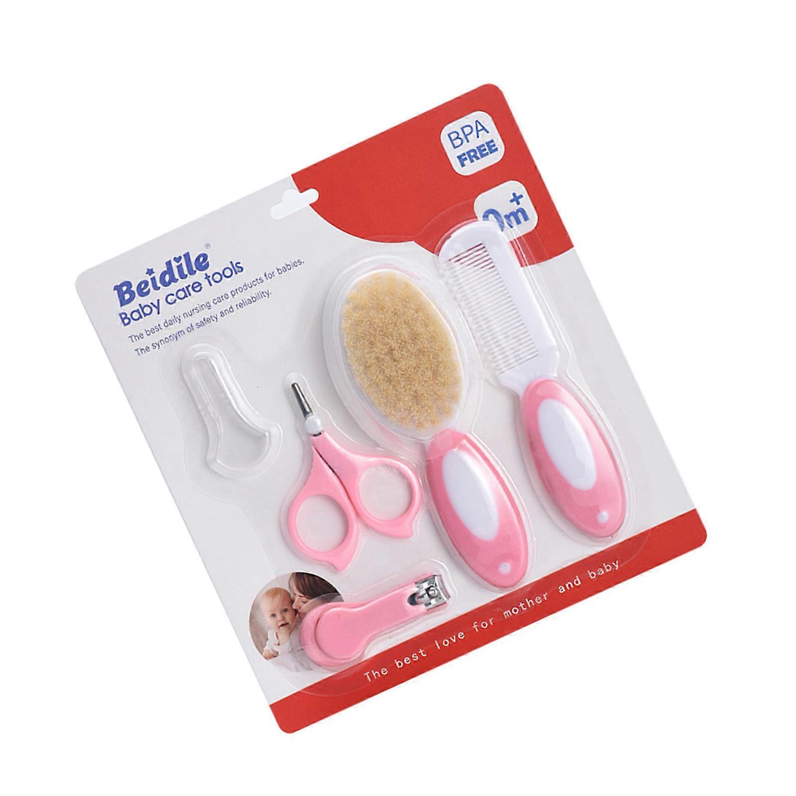5-in-1 Baby Head Comb Hair Bursh Care Set Newborns Multifunctional Nails Trimmer Toddlers Newborn Care Grooming Kit Pink B