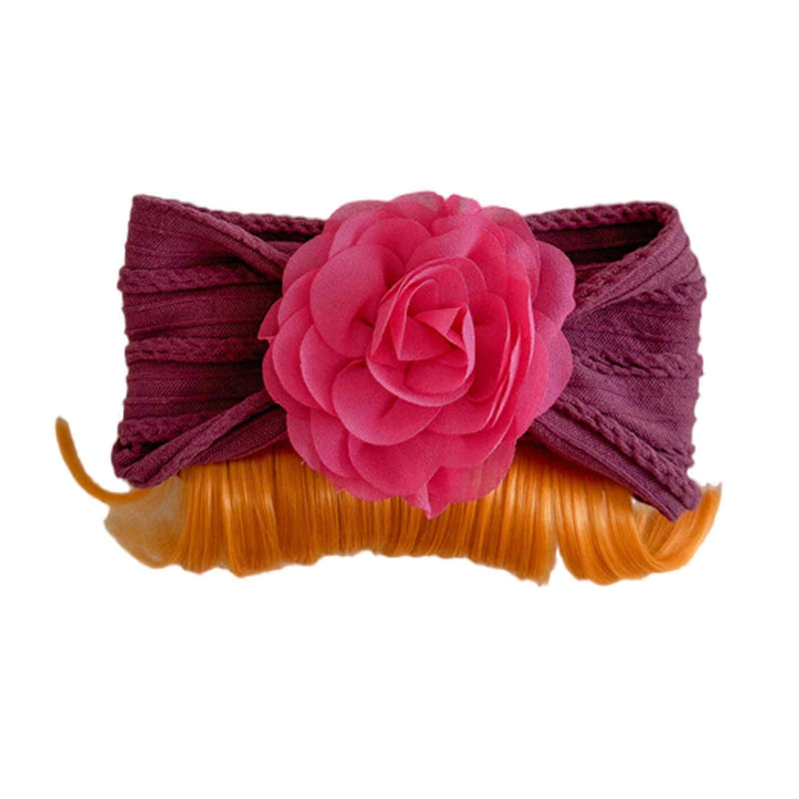 Girls Flower Wig Headband Multifunction Flower Bangs Ribbon Headband Baby Flower Wig Bangs Enhances Any Celebration Look gold purple