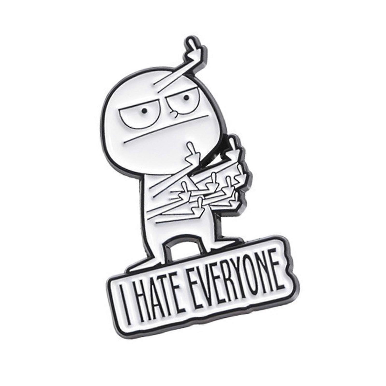 Laugh Inducing "I Hate Everyone" Pin Funny "I Hate Everyone" Gesture Badge Pin Quirky Brooch Adornment for Backpacks Multicolor