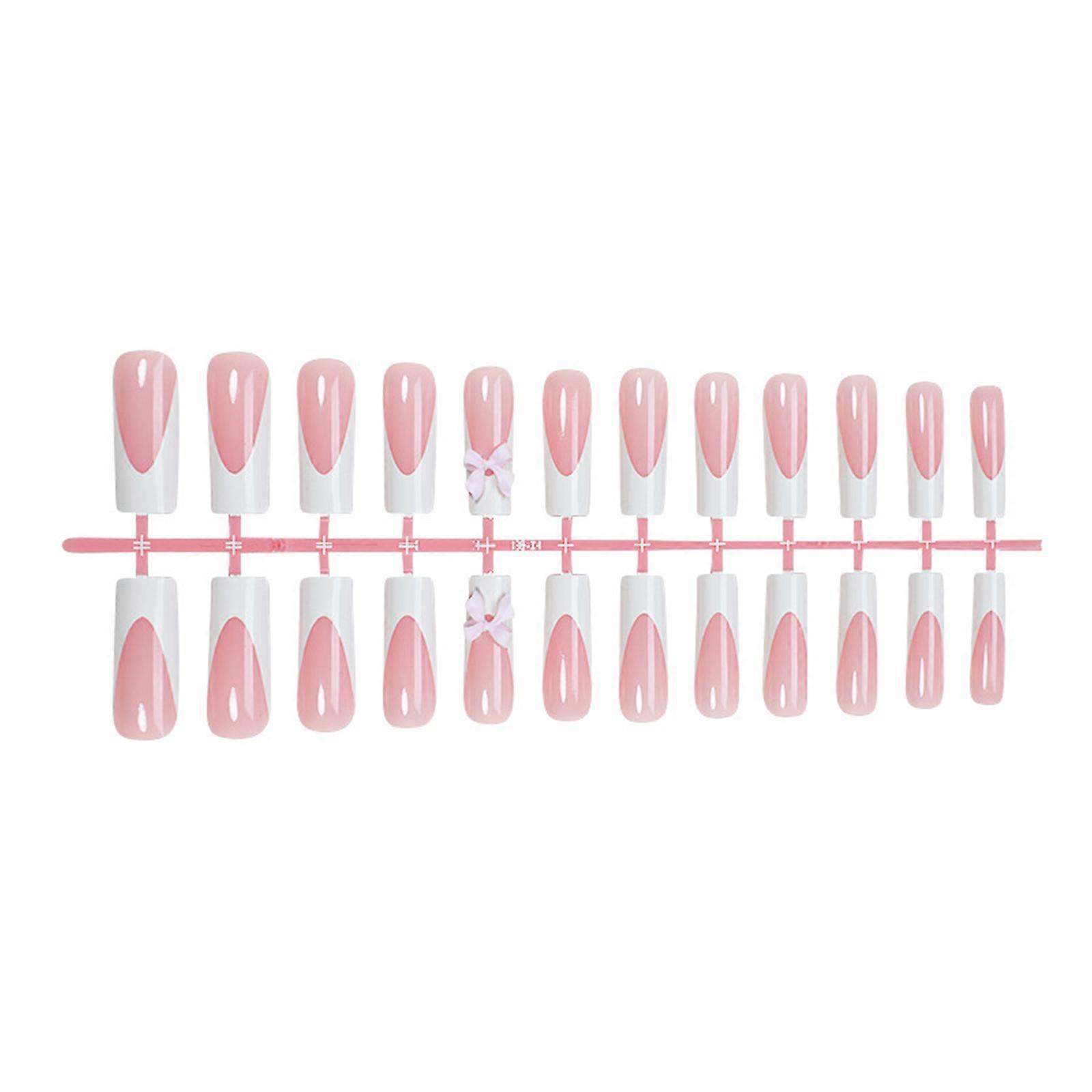 24 Pcs French Tip Press On Nails Medium Long Coffin False Nails 3D Bowknot Stick on Nails Manicures Supplies for Wome Multicolor