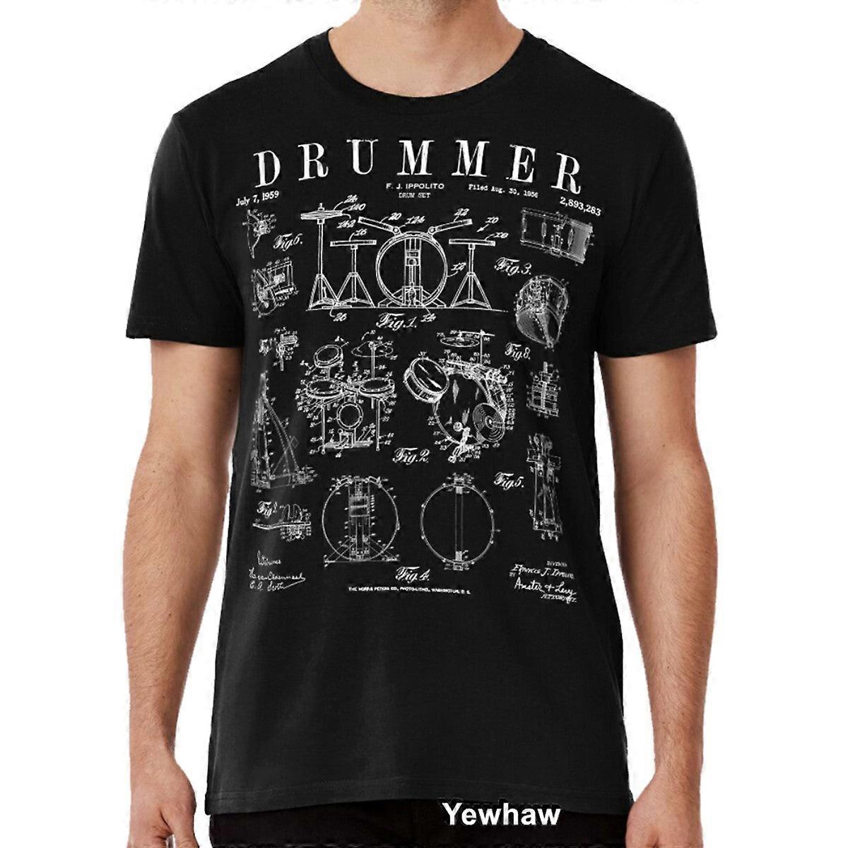 Drum Set Kit Vintage Patent Drummer Drawing Print T-shirt Drummers Drums