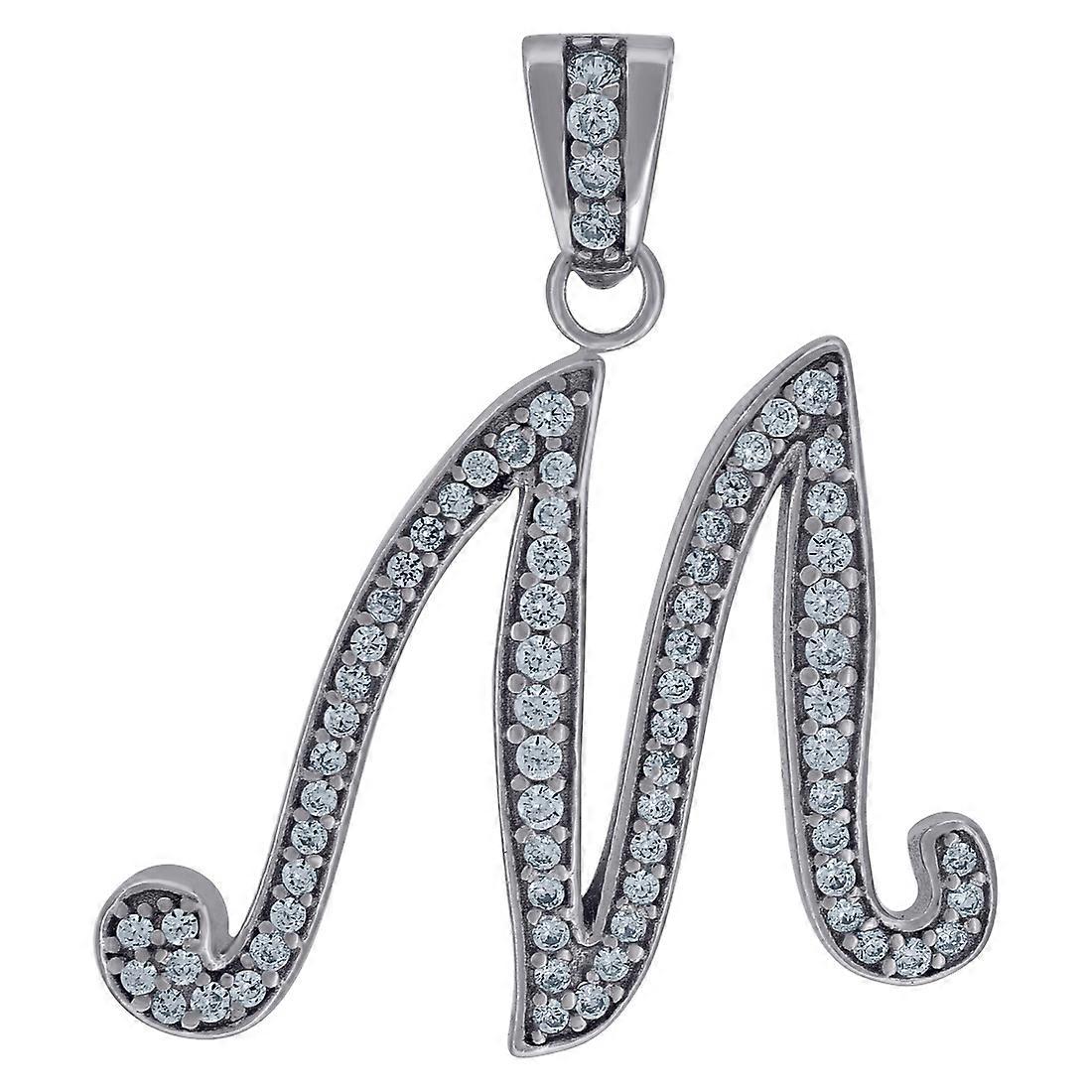 925 Sterling Silver Unisex Cubic Zirconia Letter Name Personalized Monogram Initial Alphabet M Charm Pendant Necklace 28