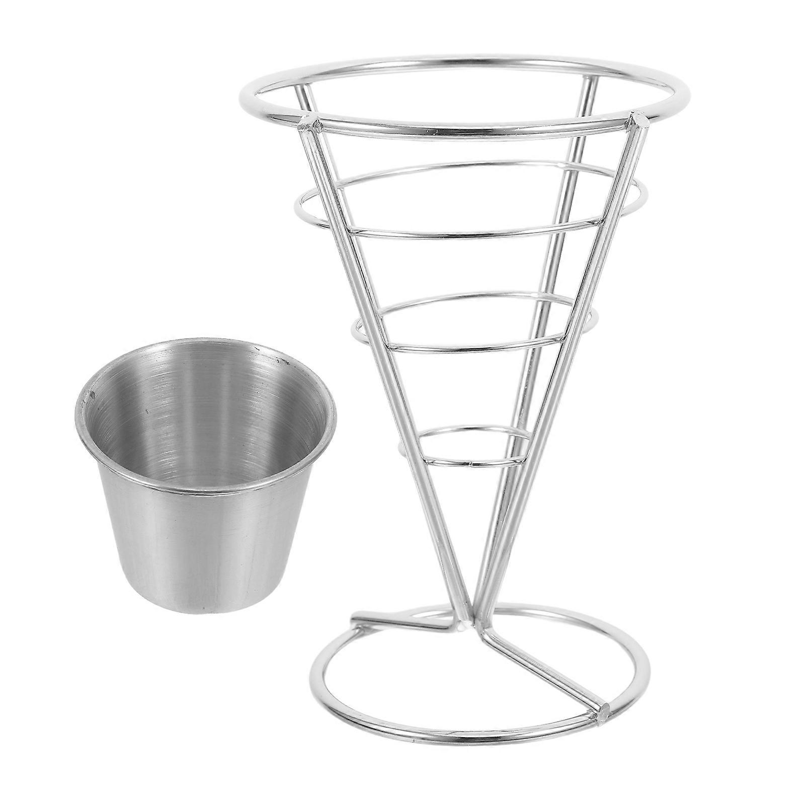 Fries Foods Stand Holder for Containing Food Metal Wire Basket with Sauce Dipper