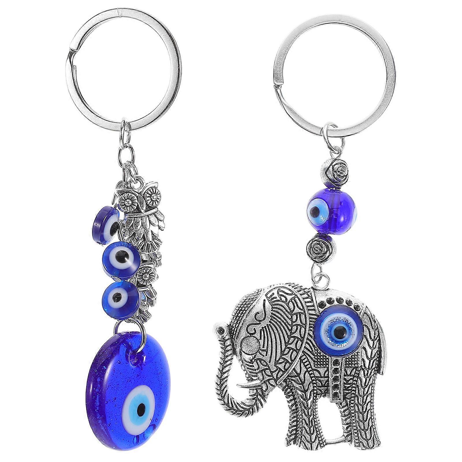 The blue eye key ring and animal hanging decor set is designed to bring a touch of charm and protection to your everyday items. The set includes an elephant and an owl keychain, each featuring a blue . These keychains are great for decorating your car keys, handbags, or backpacks, making them both practical and stylish. Features -Color:Multi -Material:Metal -Size:10.70X3.00X1.00cm/4.21X1.18X0.39in -Size:10.50X4.40X1.00cm/4.13X1.73X0.39in -Eyecatching designs: the elephant and owl shapes are both adorable and distinctive, great for any accessory -hardwearing construction: made from durable alloy, these keyrings are built to last and resist wear -Multifunctional: use them on car keys, bags, or to enhance your style -Great present option: ideal for gifting on special occasions like birthdays and holidays -Compact and Lightweight: Easy to carry and won't add extra bulk to your keys or bags Package list: 2 x keychains