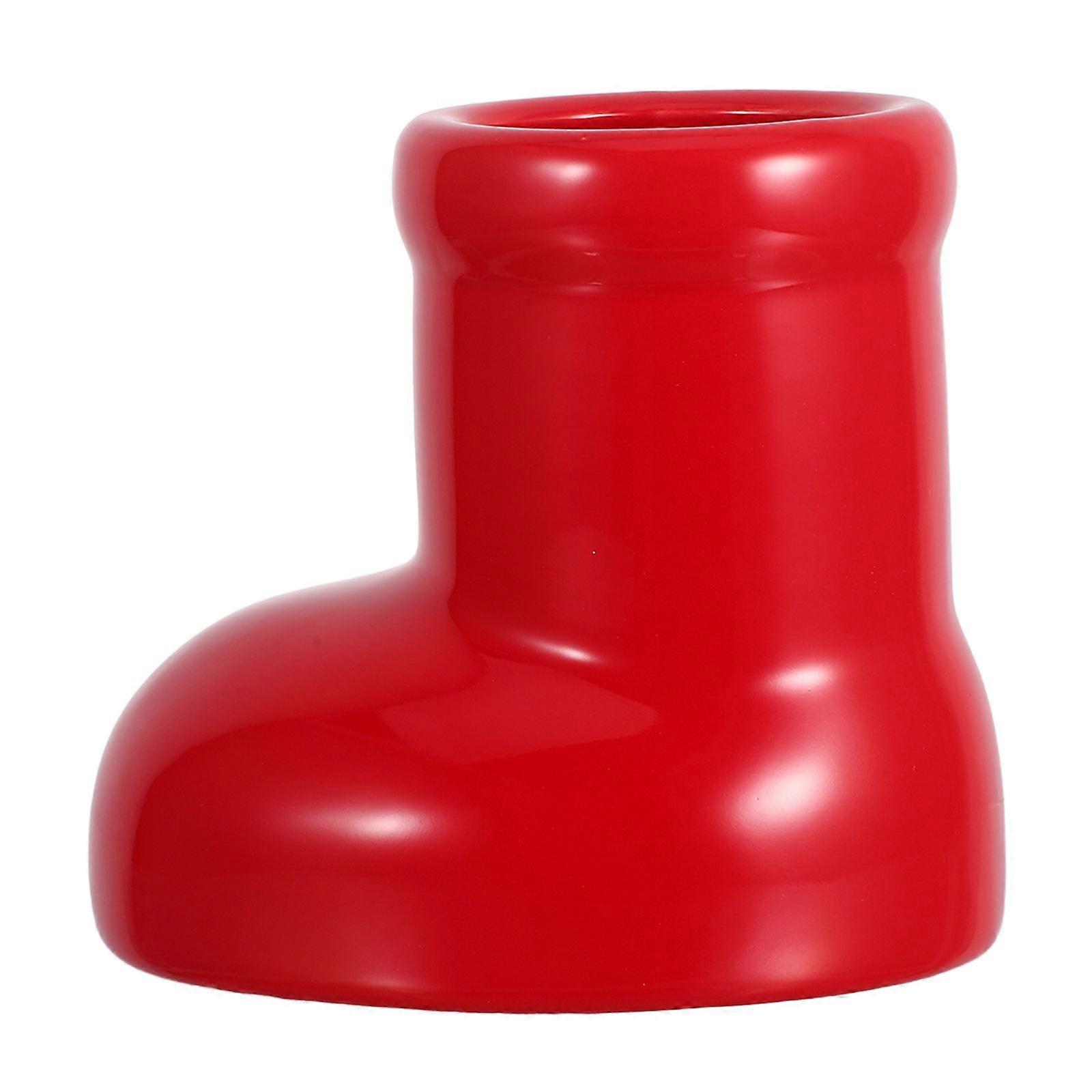 Vase botte en céramique rouge pour centre de table décoratif, idéal pour les fleurs. Couleur rouge.
