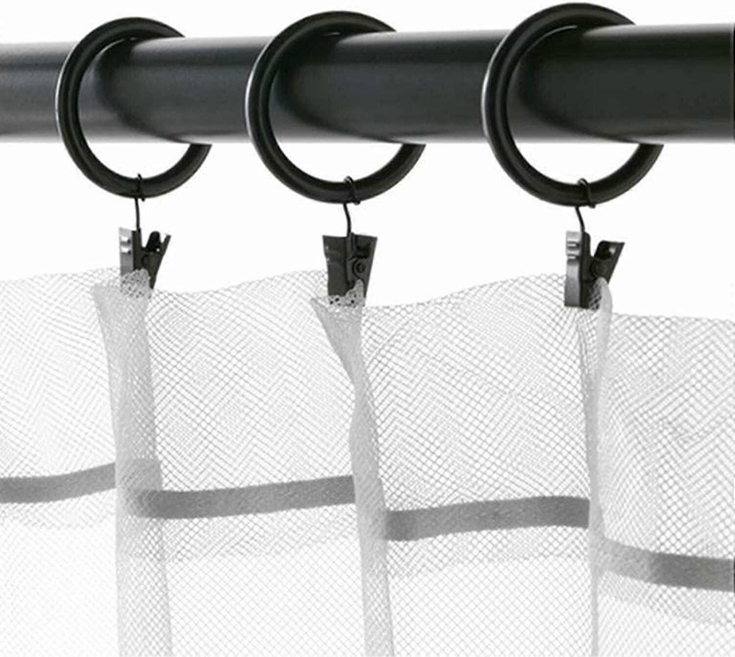 80x 1.5" inch Metal Curtain Rings with Clips Gloss Black Strong Clip Rustproof