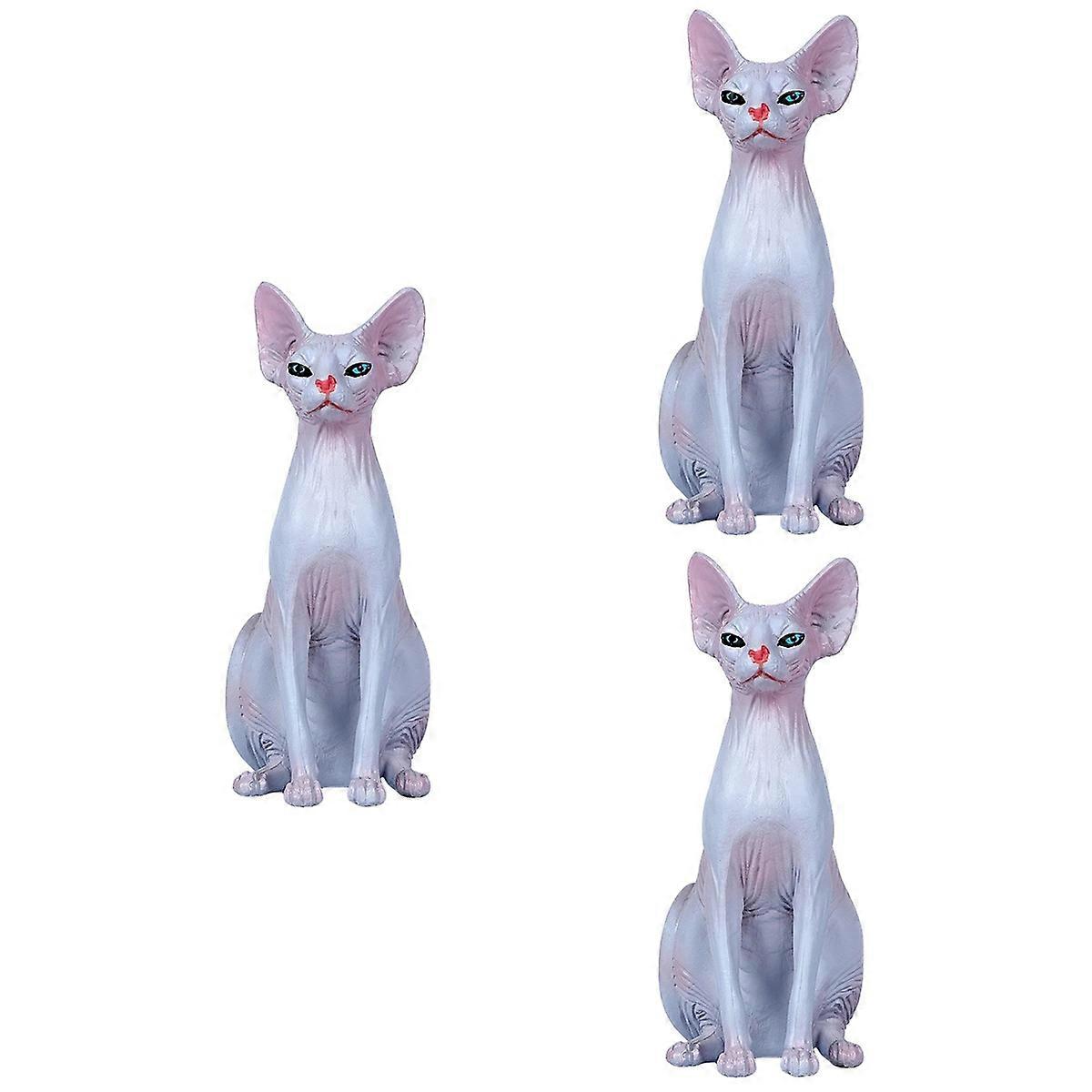 3 Count Simulated Hairless Cat Toys Plastic Cat Figures Cat Figurine Simulation Cat Ornament Child