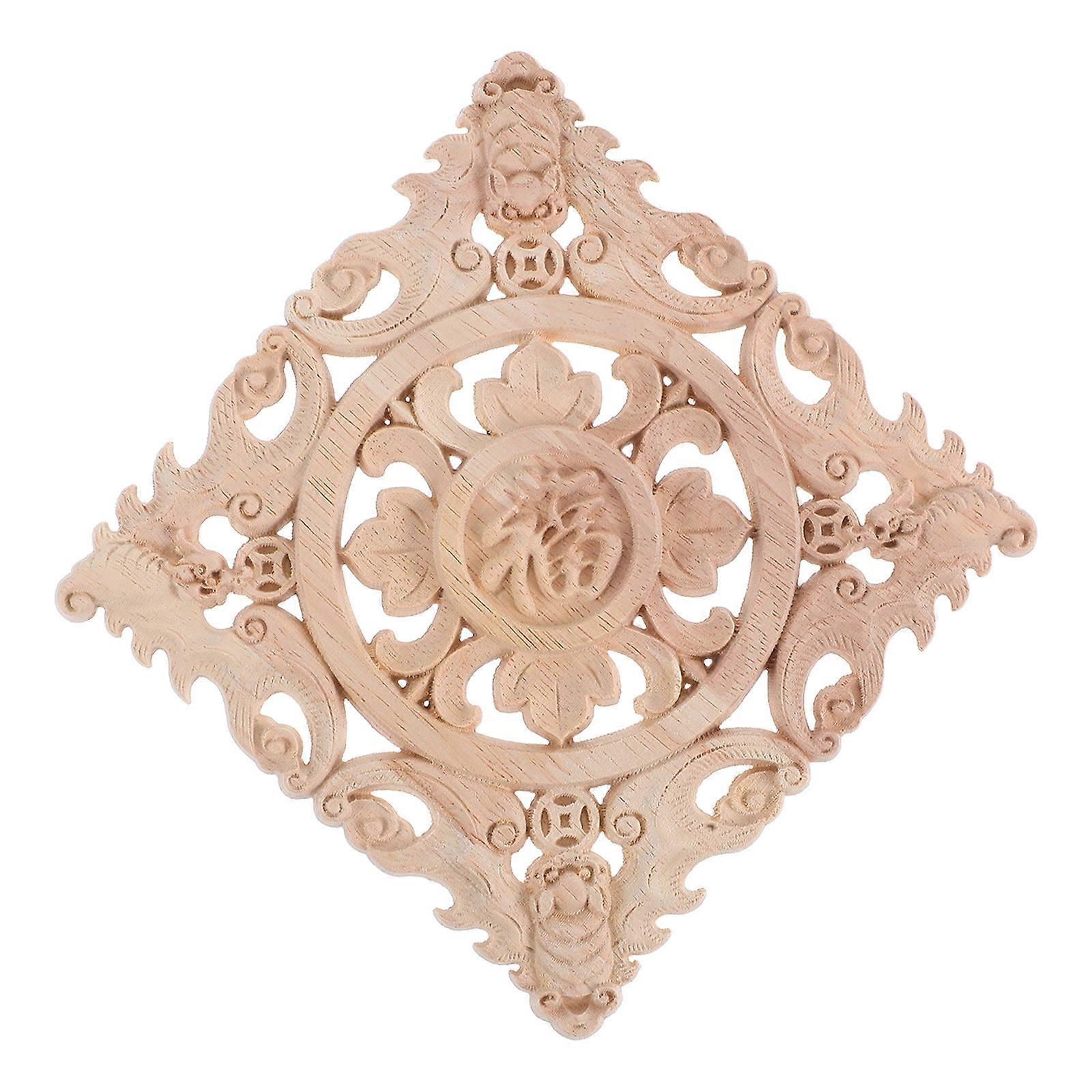 Wood Carved Onlay Square Applique for DIY Unpainted Wood Accent