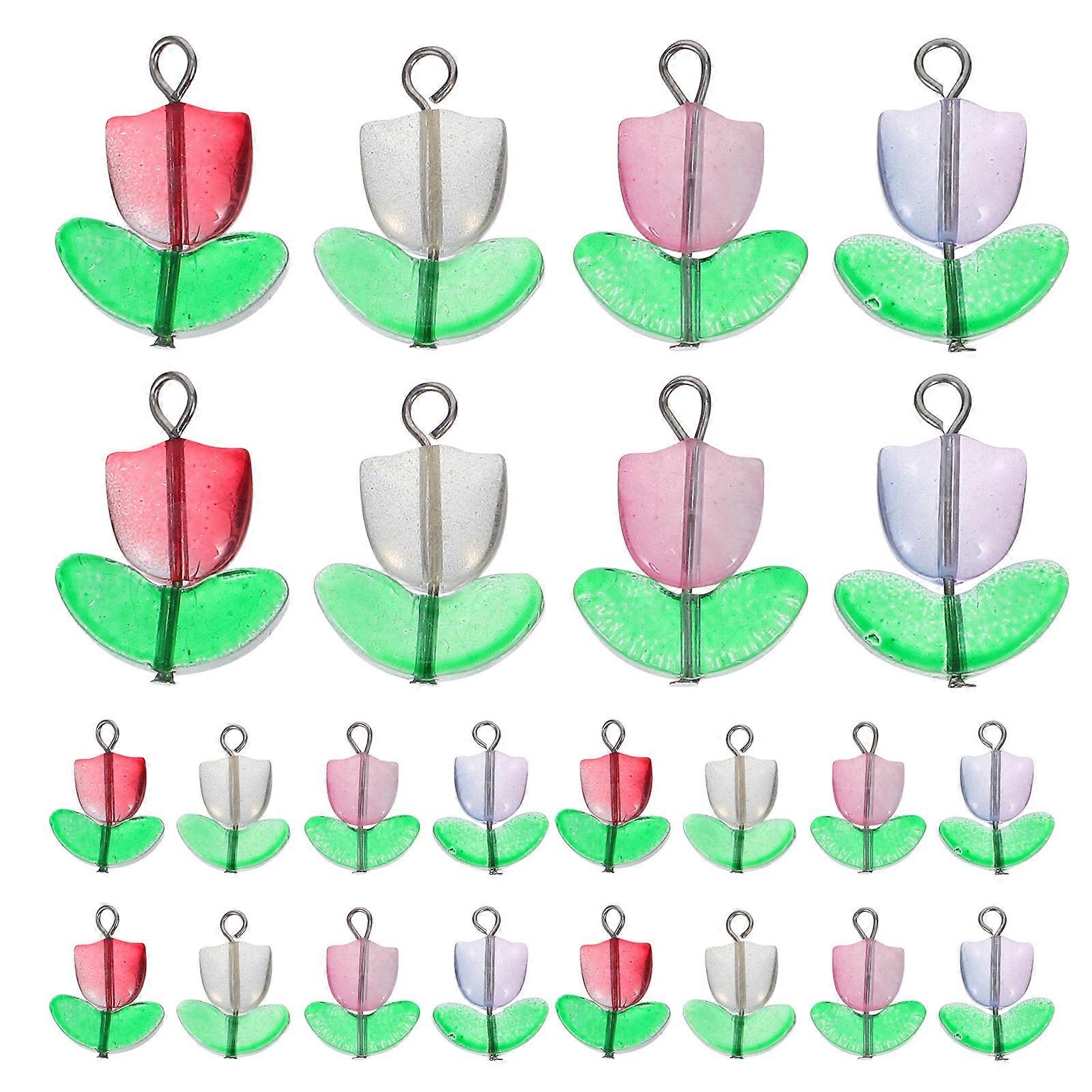 Tulip Flower Beads Pendant Purple Material Hook Design For Necklace Bracelet 100Set