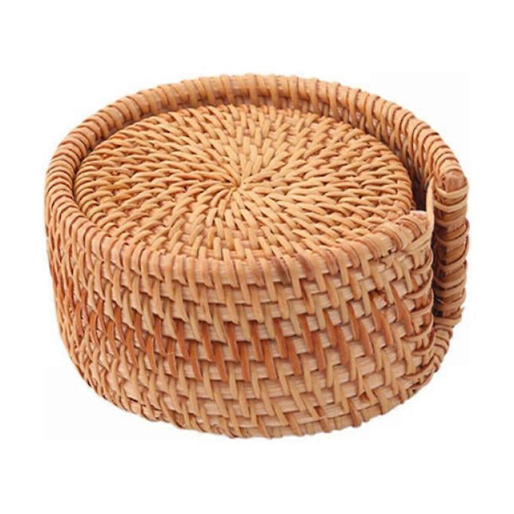 6pcs Round Rattan Woven Placemat Heat Resistant Non Slip Tea Coffee Cup Coaster for Dining Table Kitchen Tableware Pads Supplies