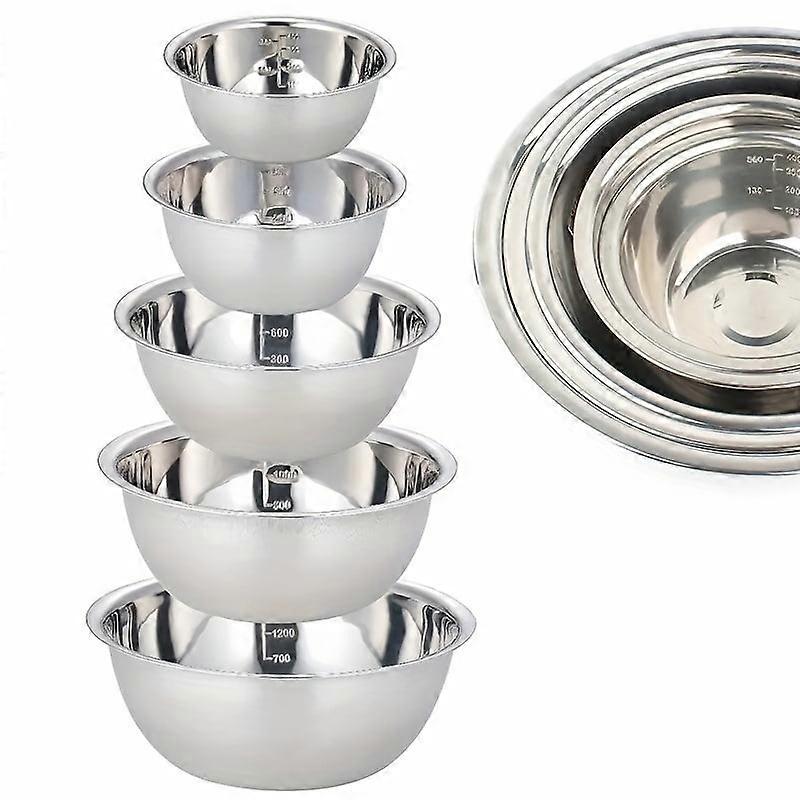 5pcs Stainless Steel Mixing Bowls with Scale, Compatible with Kitchen Cooking, Baking, Prepping, Fruit, Noodles