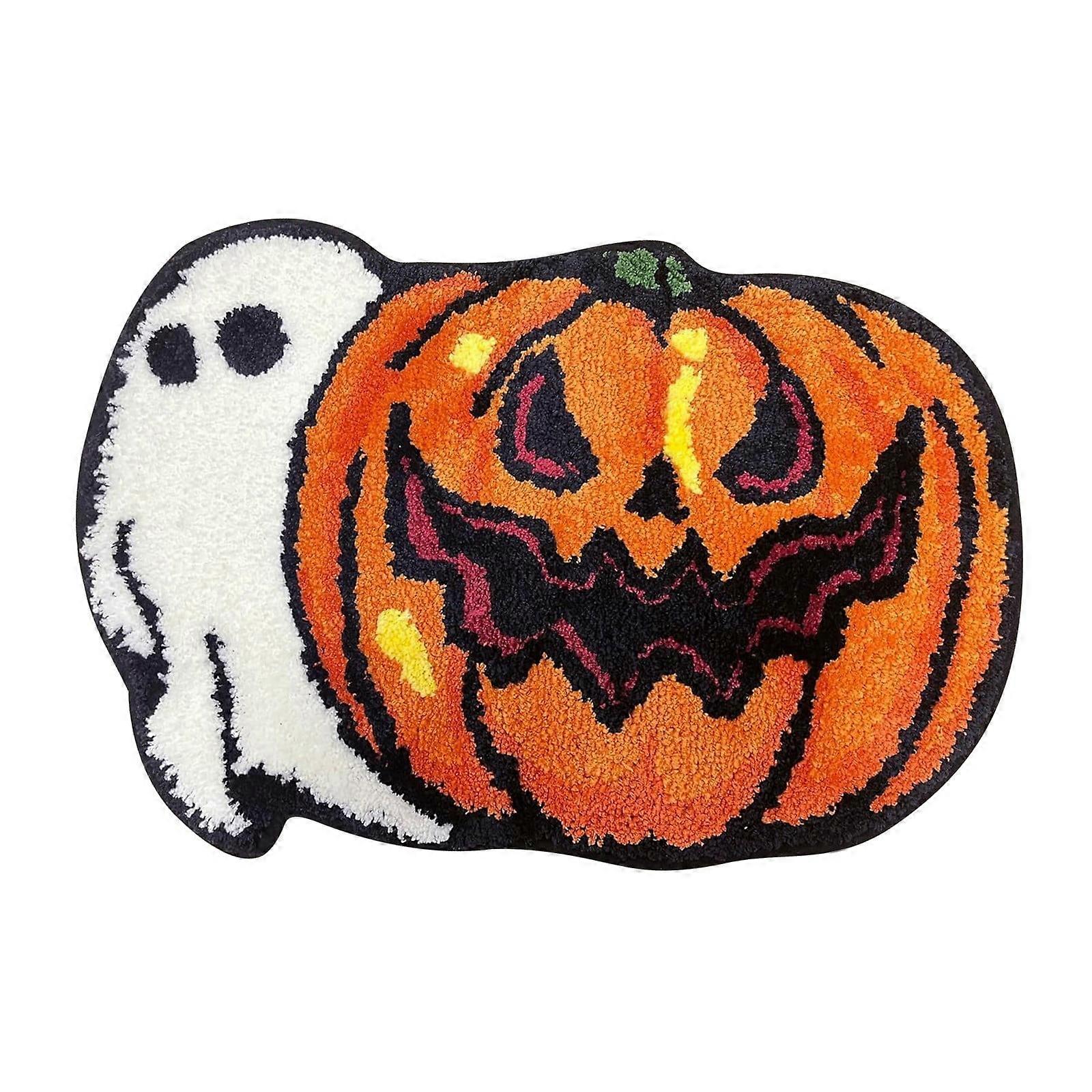 Halloween Polyester Carpet, Compatible with Bathroom Rugs, Pumpkin Bath Mat, Farmhouse Orange Decor for Home