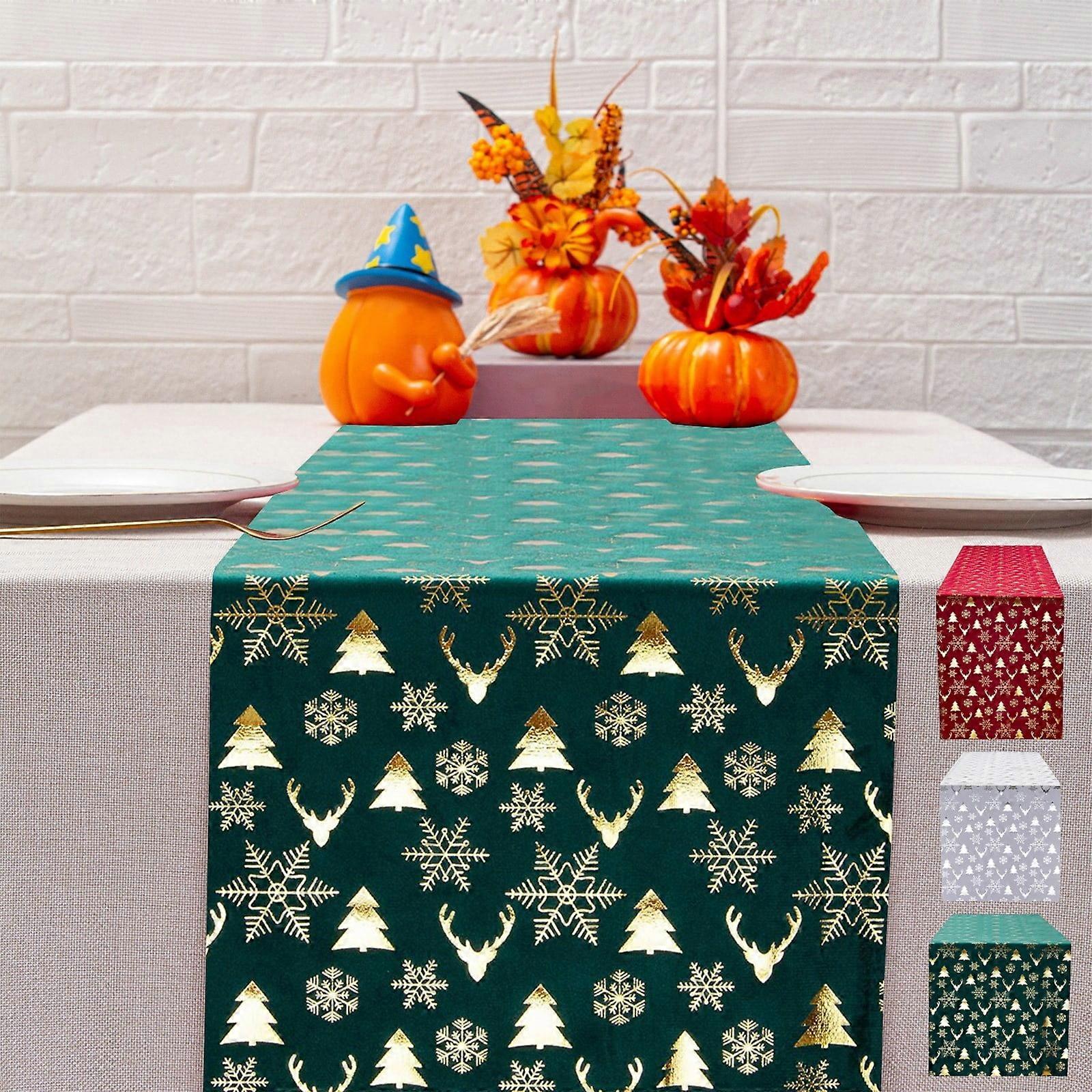 Jacenvly New Christmas Deer Table Runner, Gold Velvet Polyester Cotton, Compatible with Outdoor Indoor Holiday Decor, Printed Kitchen Flag