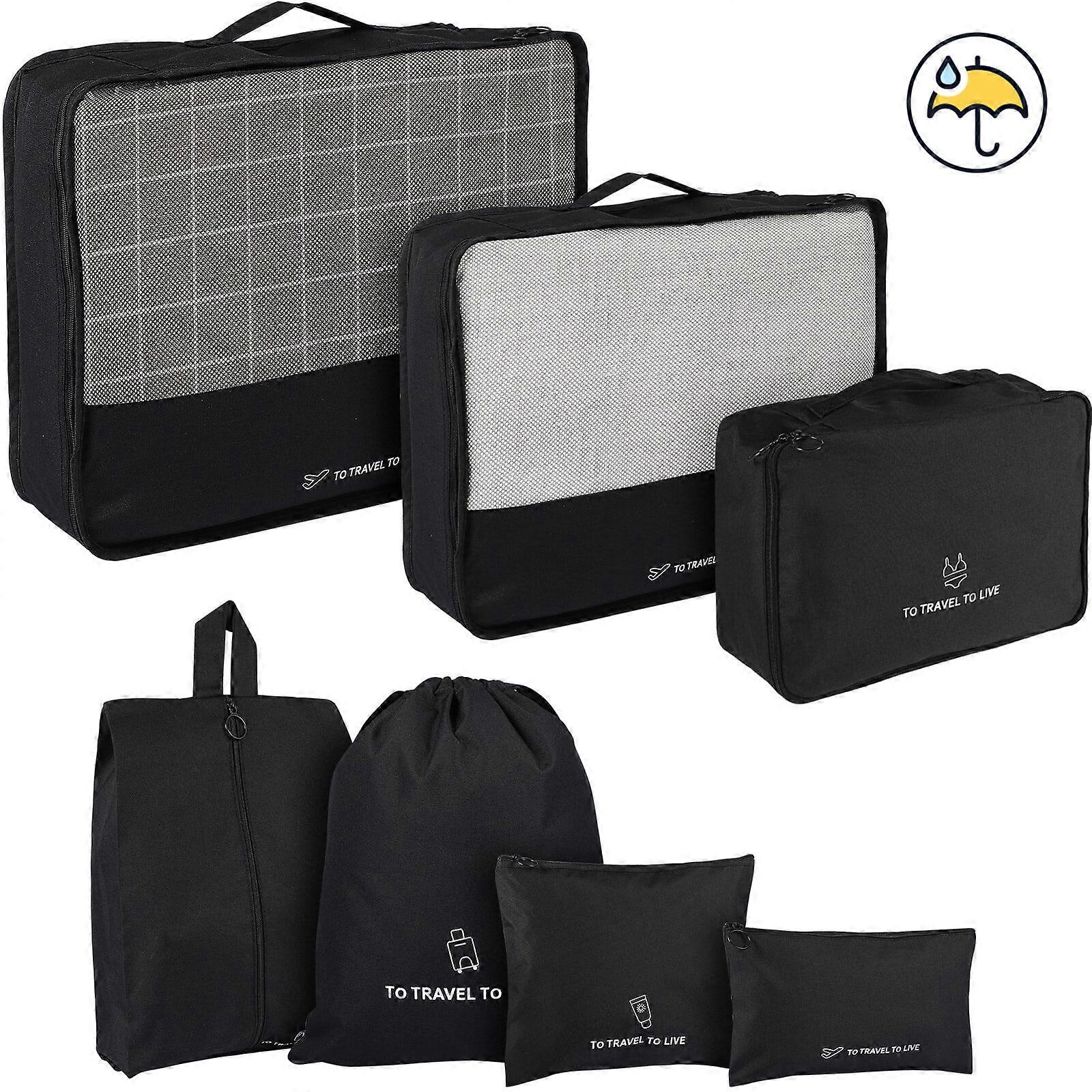 Oahisha 7 Pcs Packing Cubes Travel Pouches Multifunctional Luggage Organizer Clothes Suitcase Storage Bags (Black)