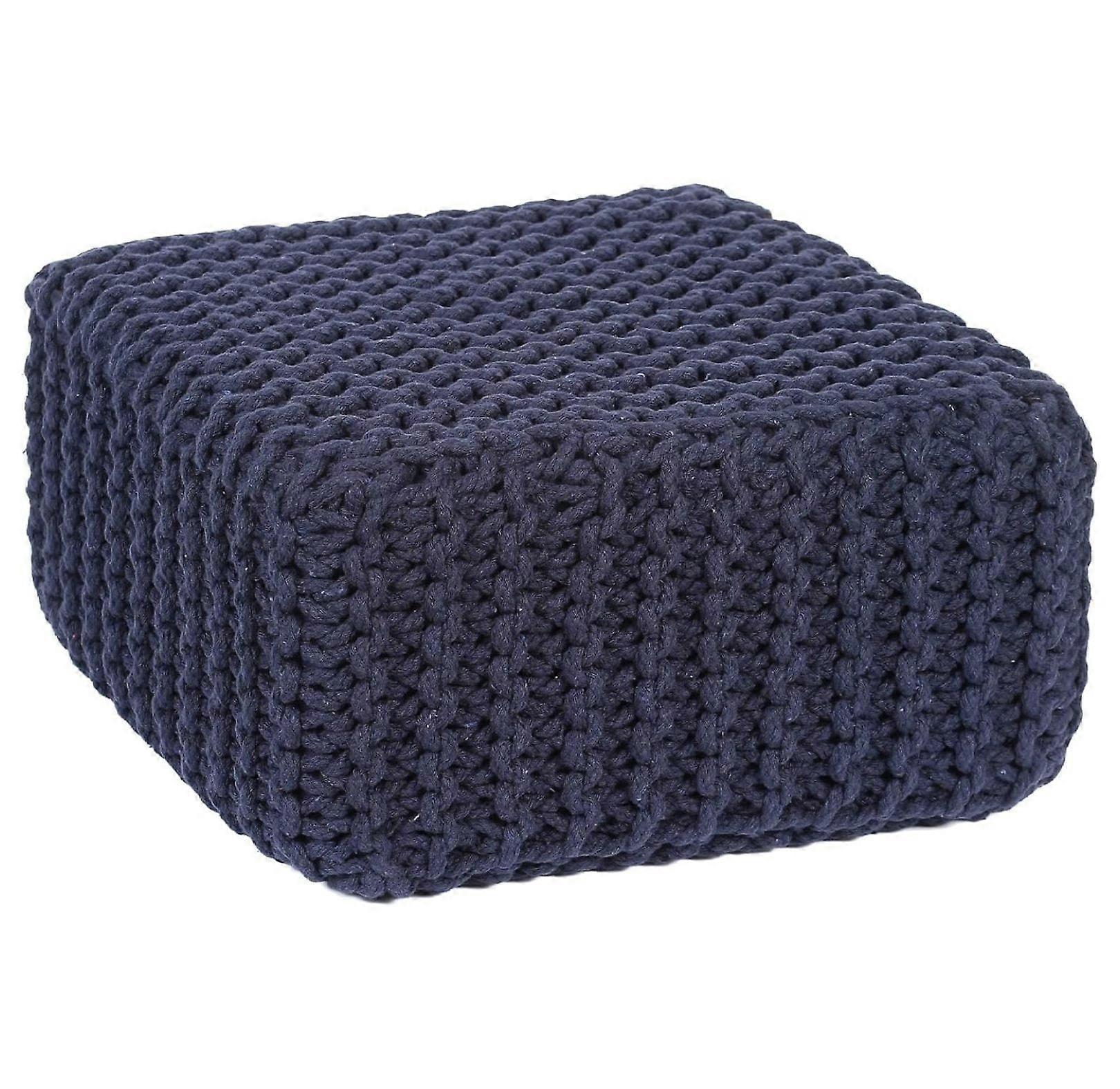 saney Cube Low Pouf Foot Stool Ottoman - Hand Knitted Boho Cord Pouffe - Stuffed Footrest for Living Room, Nursery, Bedroom, Patio (16"x16"x8") -