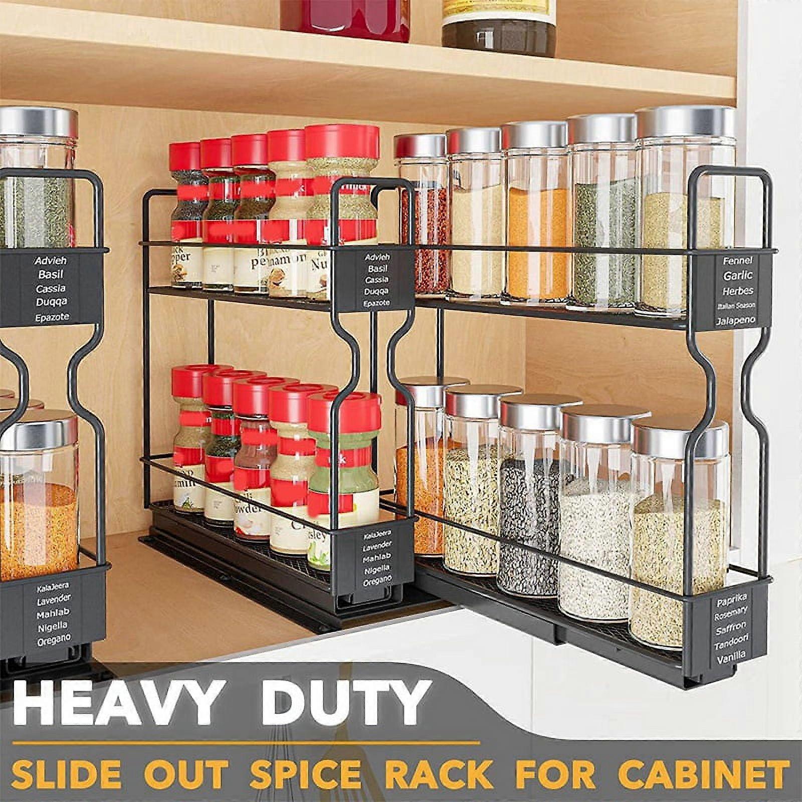 Qtmnekly Spice Rack Organizer, 2-Tier Pull Out Seasoning Rack for Kitchen Cabinet, Spice Drawer Organizer Shelf for Small Space