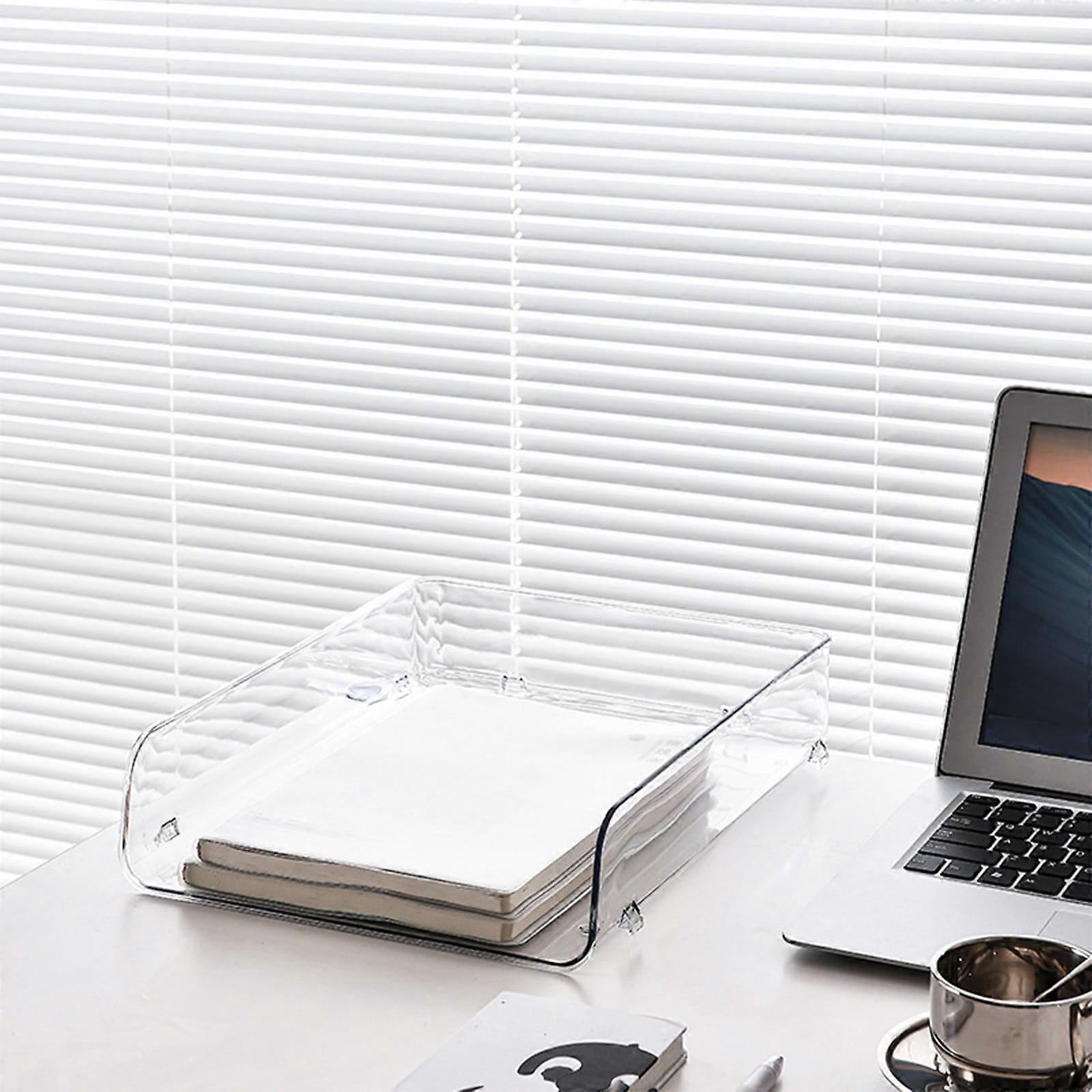 A4 Clear PET Desk Letter Tray Set, Stackable Document Organizer with Anti-Skid Convex Bottom, Side Load File Holder, compatible with standard office