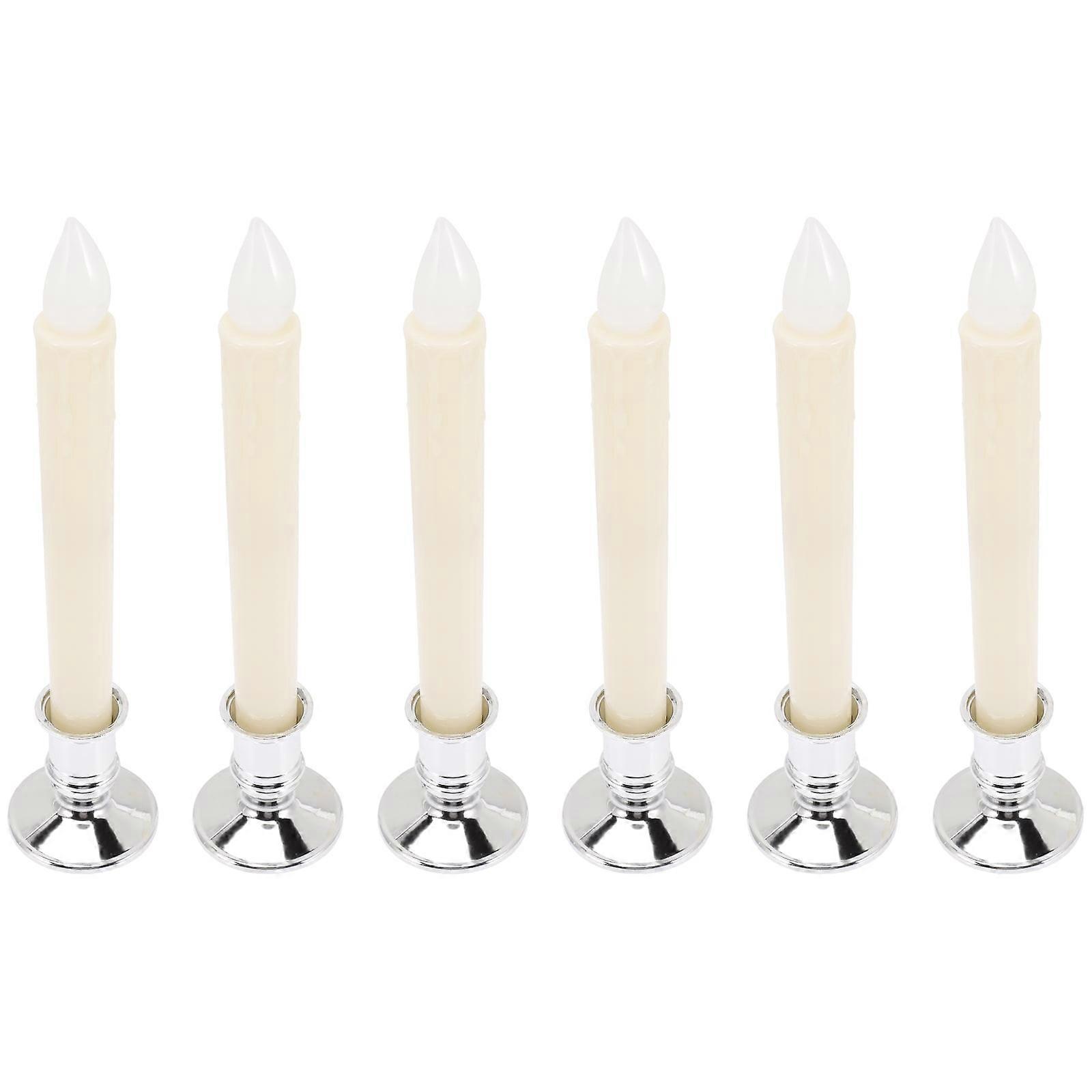 6 Pcs Fake Candles Flameless Taper White Battery Flickering Electronic Long Stick Abs Plastic