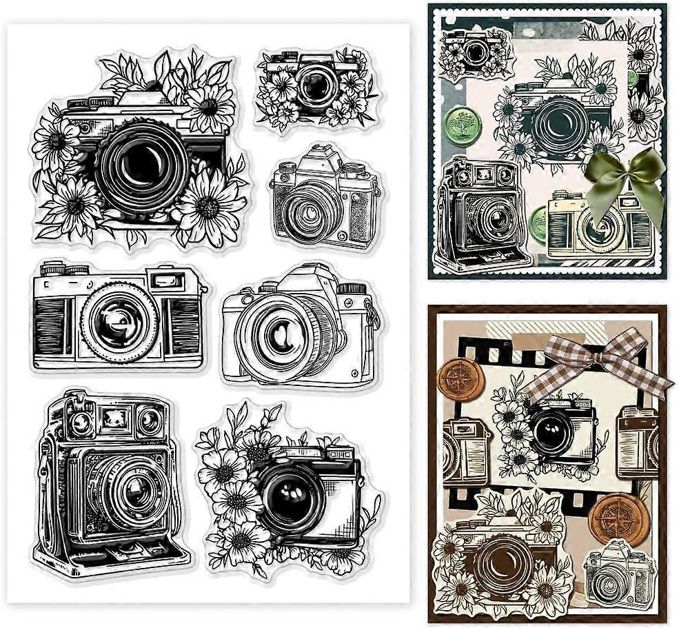 1 Pc Clear Stamps Vintage Flower Camera Scrapbooking Stamps Silicone Transparent Seal Stamp for Card Making Decoration Embossing Album Decor DIY Craft
