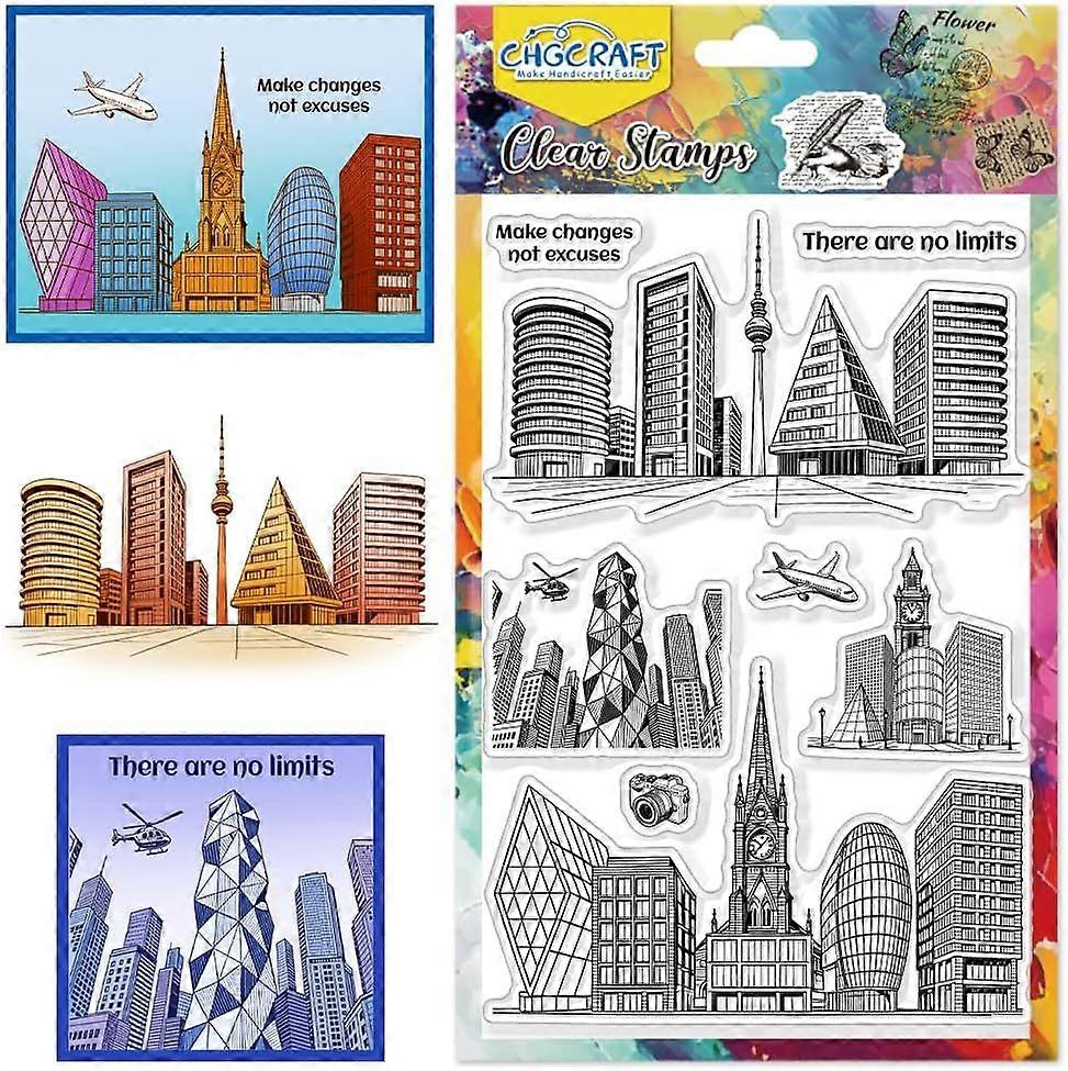 Urban Buliding Pattern Clear Stamps Transparent Airplane and Modern City Silicone Stamp Seal for DIY Scrapbooking and Card Making Paper Craft Decor 6.