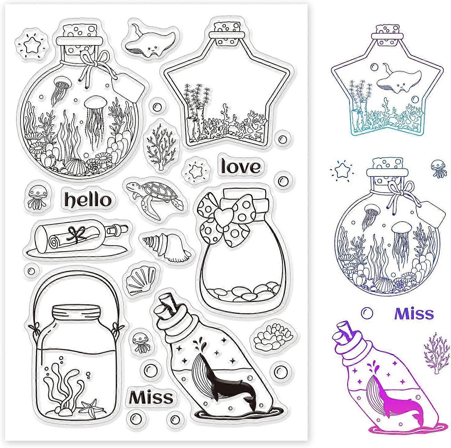 Ocean Theme Wishing Bottle Clear Stamps Jellyfish Whale Seaweed Stamps Silicone Stamp Transparent Stamp for Card Making Decoration and DIY Scrapbookin