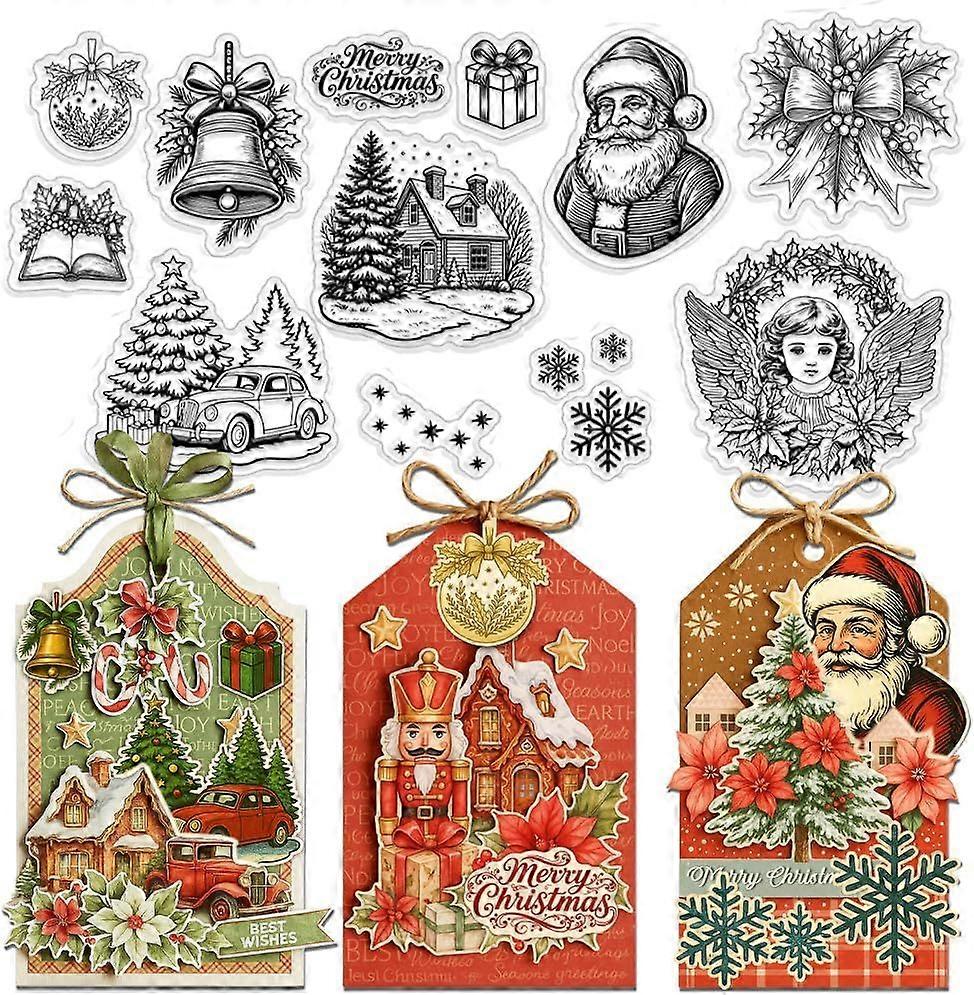 1 Sheet Christmas Clear Stamp 11 Styles Winter Snowflake Christmas Tree Wreath Transparent Rubber Stamps Reusable Silicone Clear Stamp Seals for Card