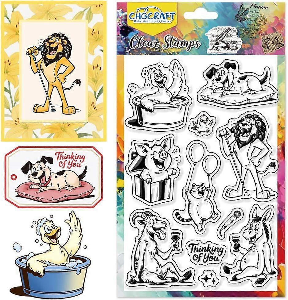 Cute and Exaggerated Animals Clear Stamps Funny Animals Transparent Stamps Silicone Clear Stamp Seals for DIY Scrapbooking Photo Album Decoration 4.3x