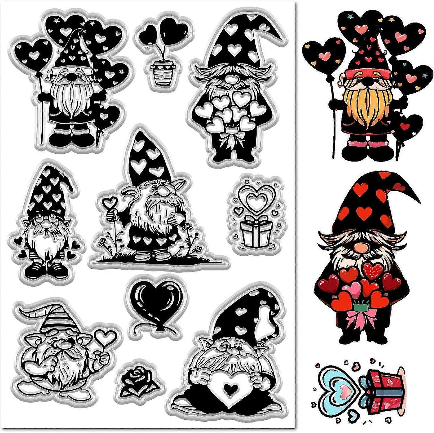 Gnome Stamp Valentines Day Clear Stamps Cartoon Dwarf Love Heart Reusable Transparent Rubber Silicone Stamps Seals for Journaling Valentine's Day Card