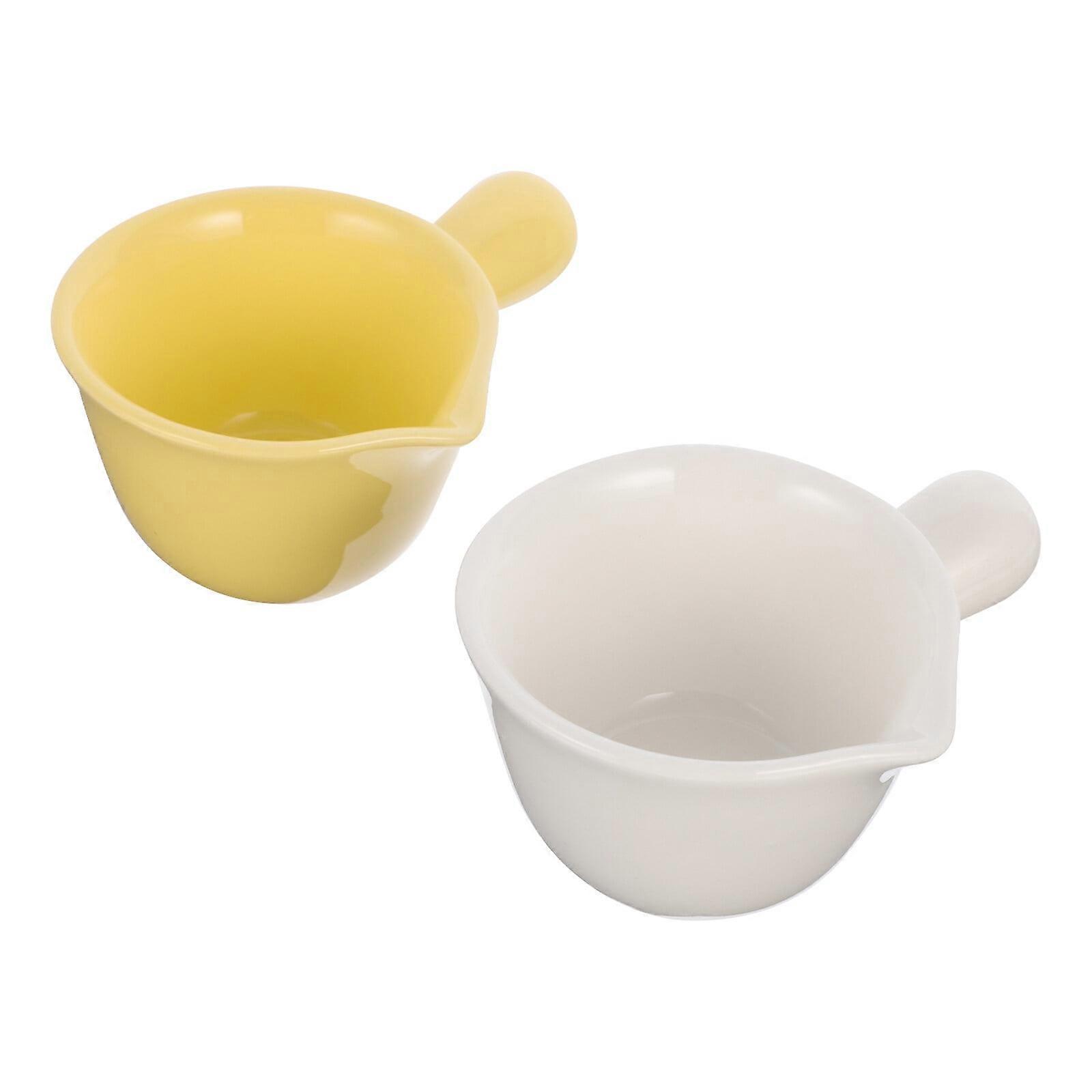 2 Pcs Long Handle Bowl Tea Creamer Pitcher Syrup Coffee Milk White Ceramics