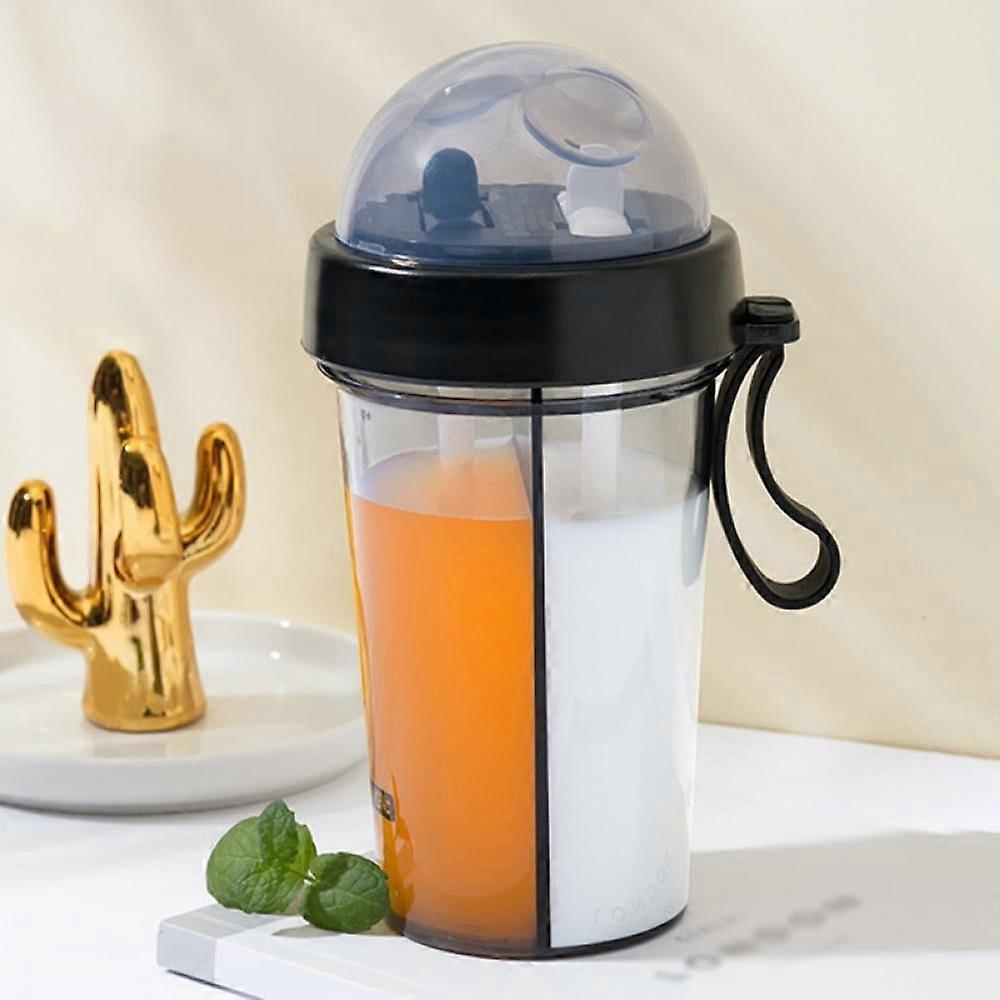 420ml Drink Cup with Two Straws, Portable Sparkling Water Bottle with Handle, Compatible with Outdoor Travel, Sport, Kids (Black)